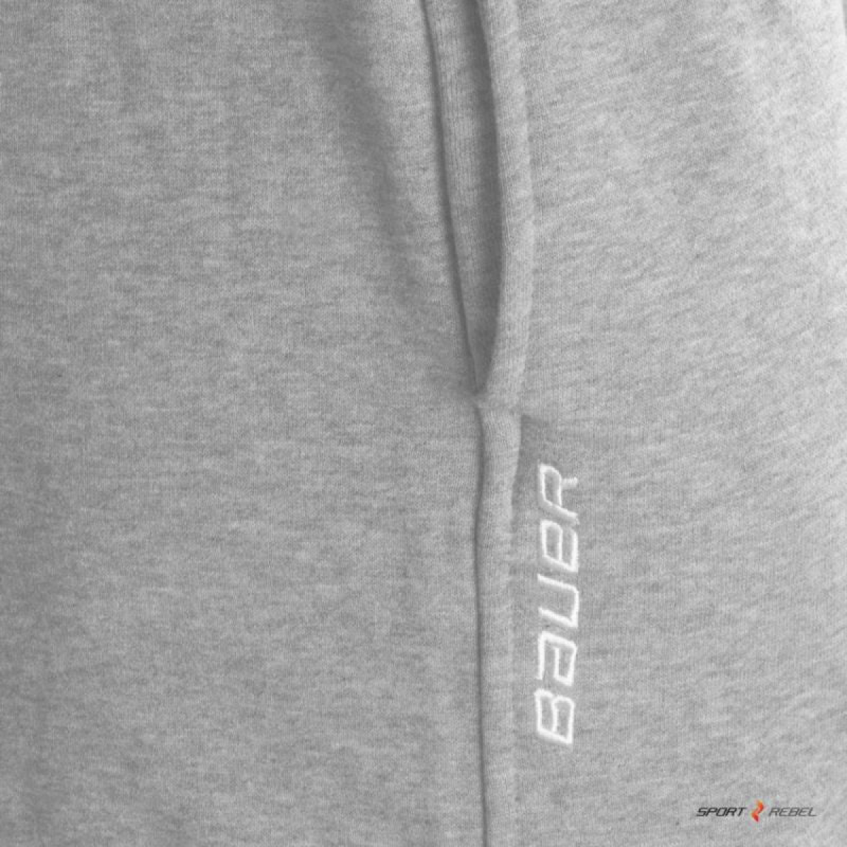 Bauer sweatpants, perfect for wearing during training and on weekdays. They have an elastic waistband and a drawstring. Two side pockets on the seam. Fleece-lined legs with cuffs. The Bauer logo is embroidered on the front right side. Material: 80% cotton, 20% polyester, 300 g fleece inside.
