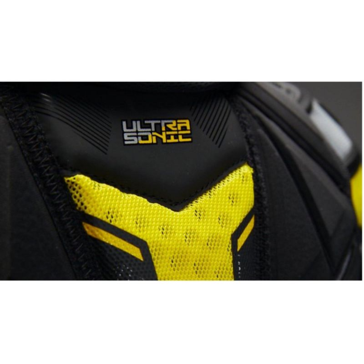 Bauer Ultrasonic Jr. Hockey Shoulder Pads: Maximum mobility and superior protection. AMP technology gives the shoulder guard and split biceps a design that ensures protection always follows the shoulder joint without restriction, regardless of position on the ice. Reinforced protection against puck and stick impacts. ADAPTIV Skin bridge is our new protection system that provides significant protection while conforming to the body's shape. Superior performance. Play confidently without compromising speed. Keeps you dry THERMO CORE lining is a superior sweat control system, antibacterial and anti-odor Level: Elite Size: S,M Shoulders: AMP shoulder pad Sternum: ADAPTIV Front panels: Molded full coverage vest with sliding sternum Spine: Molded HD foam with protection Back panels: Molded full coverage vest with extended drawcord Arch: Molded with PE insert Biceps: Adjustable AMP Split Padding: THERMO CORE