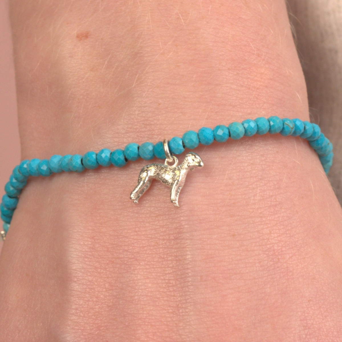 Celebrate your beloved Bedlington Terrier with this personalised Bedlington Terrier bracelet made with your choice of semi precious stones. Whether it’s a thoughtful birthday gift for a dog mum or a heartfelt keepsake for a pet lover, this bracelet is a beautiful way to honour the special bond you share. Choose from a Black Onyx, Rose Quartz, Red Aventurine, Amethyst, Opal or Turquoise bracelet.