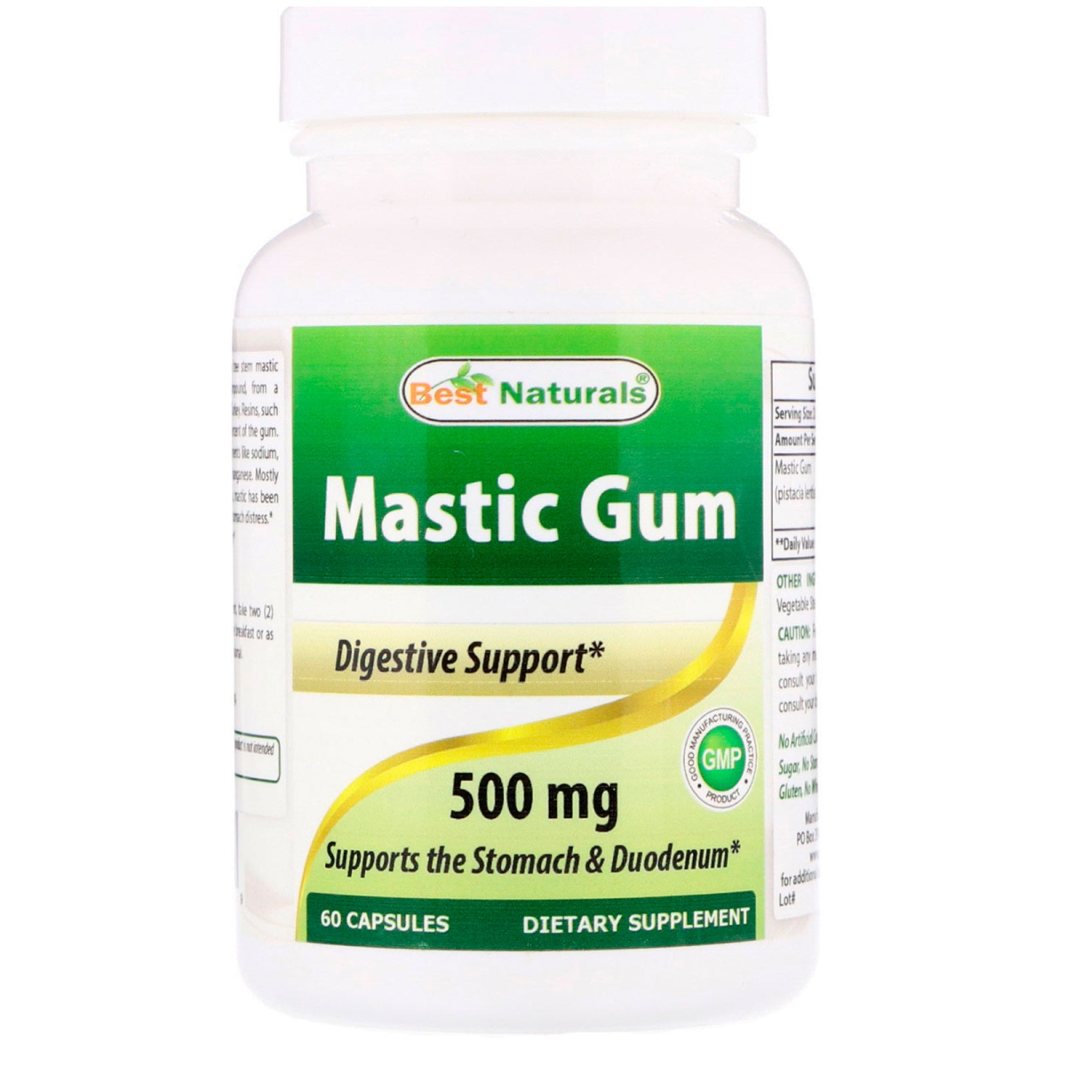 Digestive Support GMP - Good Manufacturing Practice Product Supports the Stomach & Duodenum Dietary Supplement Best Natural Mastic Gum contains natural tree stem mastic gum (pistacia lentiscus), a resinous compound, from a shrub-like tree grown mainly in Greece and Turkey. Resins, such as the triterpene mastic acid, make up 90 percent of the gum. Mastic gum contains a number of trace elements like sodium, magnesium, potassium, iron, calcium and manganese. Mostly composed of resinous gum and volatile oils, mastic has been used for centuries by traditional healers for stomach distress. Supports gastrointestinal and oral health Supports healthy stomach lining Supports always digestive discomfort