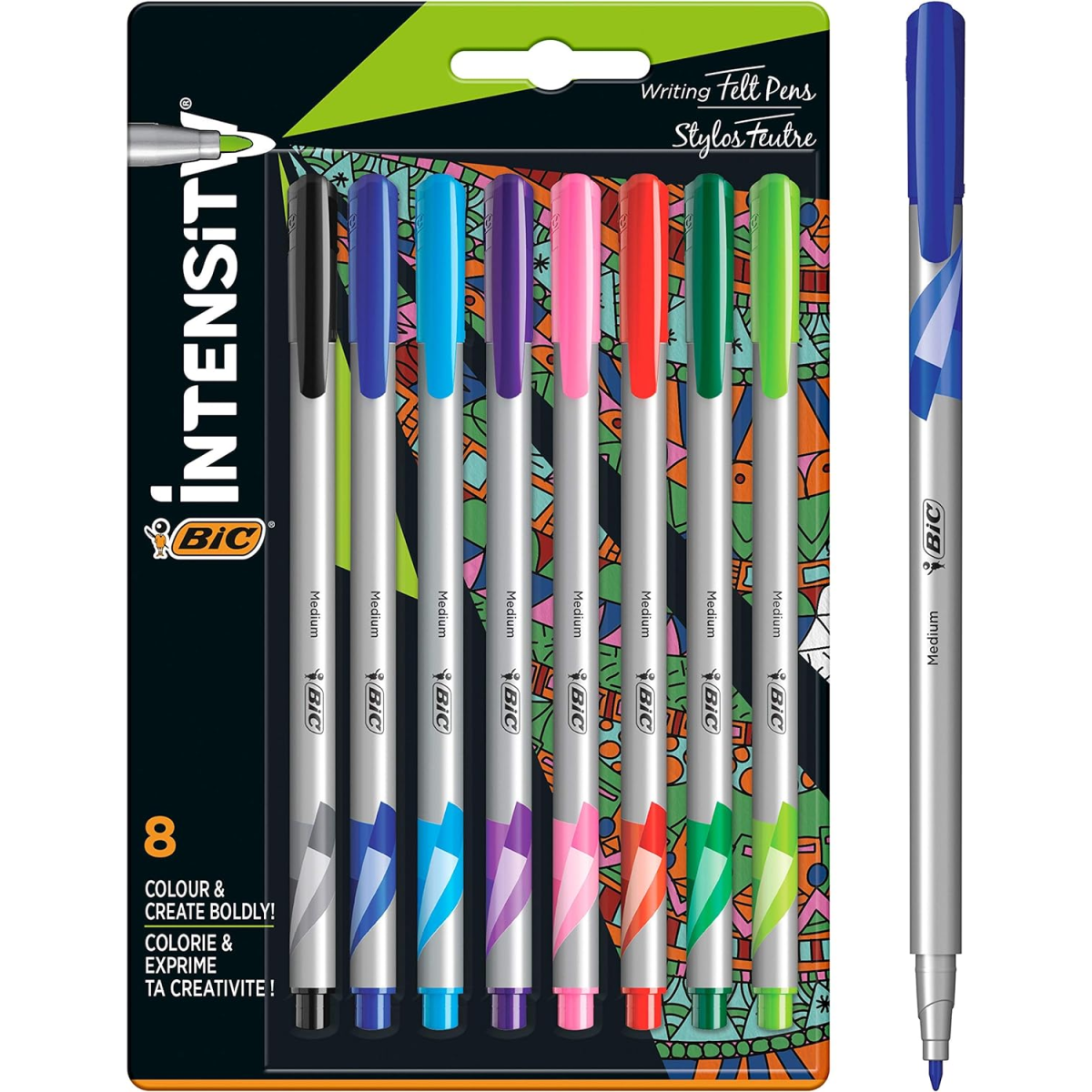 BIC INTENSITY Fineliner Medium Point Pen – Set of 8 Felt Pens - 978138