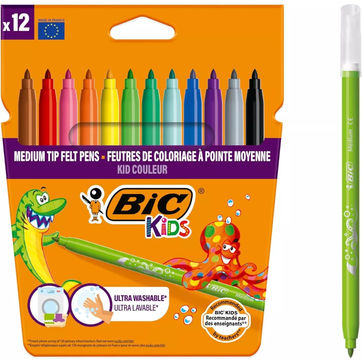 The Water-based BIC Kids Kid Couleur felt tip pens are super easy to wash off hands and most fabrics