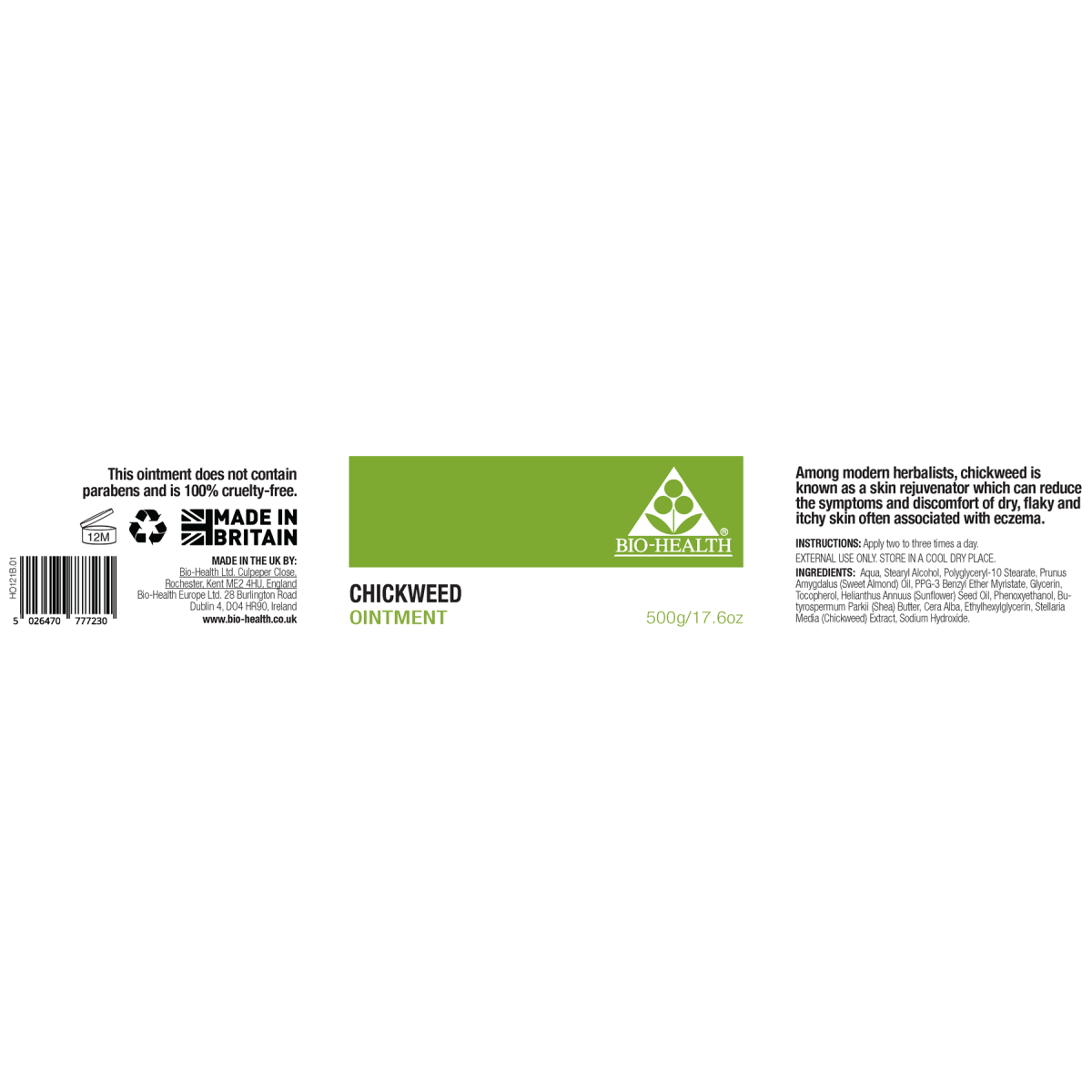 Experience the calming benefits of Bio-Health's unique Chickweed ointment, crafted to alleviate dry, flaky, and itchy skin, with a focus on soothing irritation commonly associated with skin conditions. This specialised formulation provides natural relief, making it an ideal choice to nurture and restore the health of your skin.
