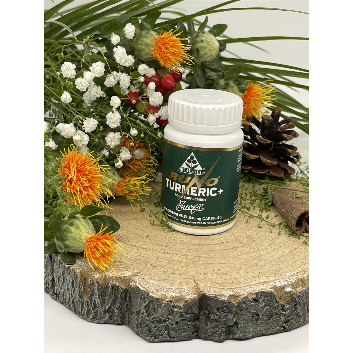 Experience the exceptional benefits of Bio-Health's unique Runo Turmeric Plus, carefully formulated with curcumins that collaborate synergistically in the body. These curcumins may contribute to liver and digestive health while helping in the management of inflammatory responses. To maximize absorption, black pepper is added, enhancing the overall effectiveness of this powerful blend.