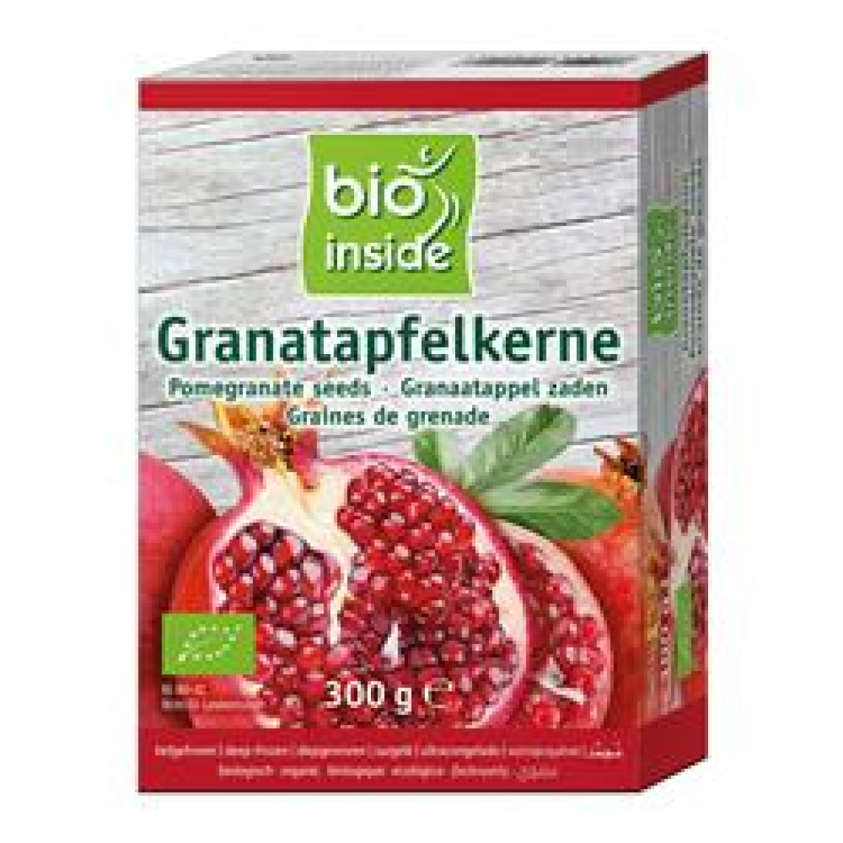 Organic juicy pomegranate seeds, ideal for fruit salads, mueslis, smoothies and cocktails. Deep frozen. Unsweetened.