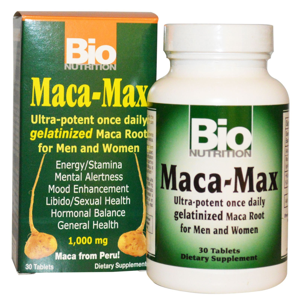 Ultra-Potent Once Daily Gelatinized Maca Root For Men and Women Energy/Stamina Mental Alertness Mood Enhancement Libido/Sexual Health Hormonal Balance General Health Maca from Peru! Dietary Supplement Satisfaction Guaranteed Bio Nutrition’s Maca-Max is an ultra-potent form of gelatinized Maca Root in a once daily 1,000 mg tablet. Gelatinized Maca has undergone a comprehensive purification process removing unwanted pathogens, toxins and starches that are found in standard Maca products. Gelatinized Maca is up to 90% more absorbable then non gelatinized Maca Root.