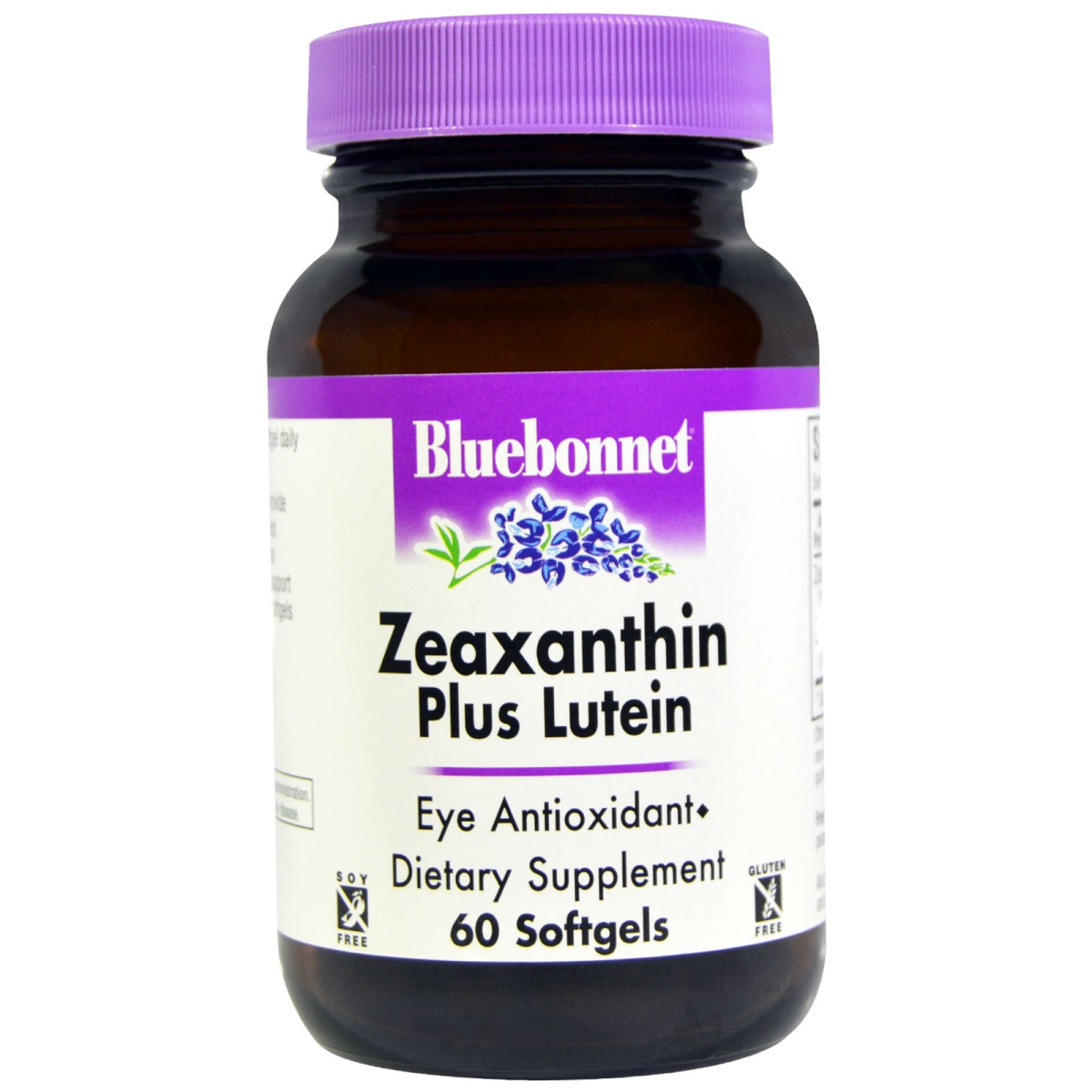 Eye Antioxidant Dietary Supplement Soy Free Gluten Free Bluebonnet's Zeaxanthin Plus Lutein Softgels provide pure zeaxanthin and lutein from natural paprika and marigold flower extracts. Zeaxanthin and lutein are carotenoids that serve as potent antioxidants to support optimal eye health. Available in easy-to-swallow softgels for maximum assimilation and absorption.