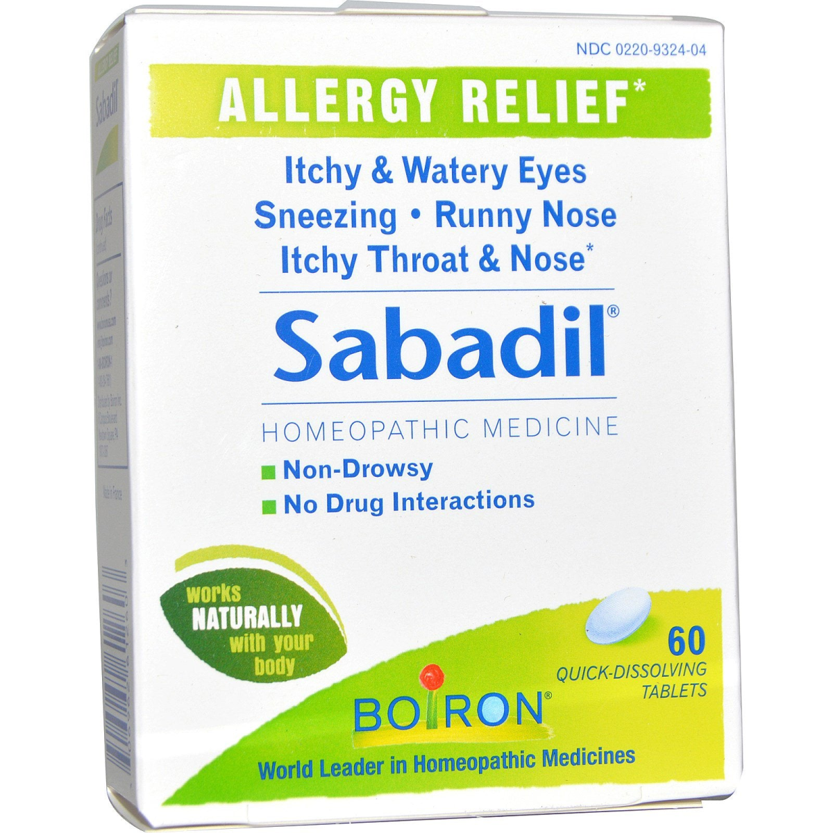 Take Sabadil at the First Sign of Allergy Symptoms Allergy Itchy & Watery Eyes Sneezing Runny Nose Itchy Throat & Nose Homeopathic Medicine Non-Drowsy No Drug Interactions Works Naturally with Your Body The Boiron Promise At Boiron, we believe there's a better way to feel good. A better way that works naturally with your body. Since 1932, the Boiron family has been committed to providing safe, natural medicines. As the world leader in homeopathic medicines, our passion is your total health. Our promise is your total satisfaction. Uses Temporarily relives one or more of these symptoms of hay fever or other upper respiratory allergies: itchy and watery eyes sneezing runny nose itchy throat and nose
