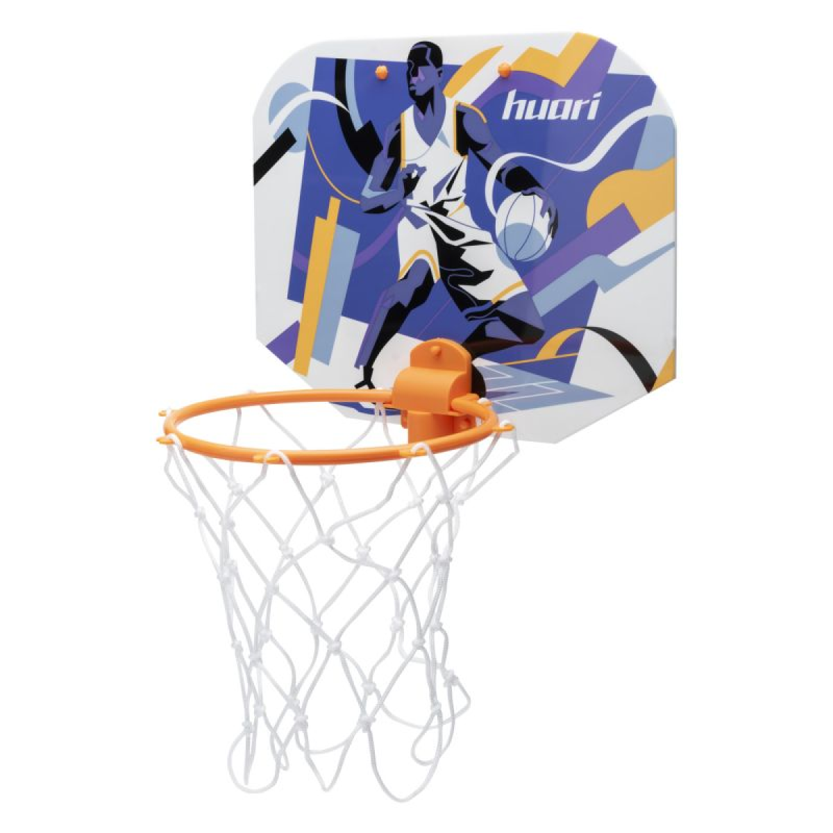 MINI BASKETBALL SET BACKBOARD DIMENSIONS: 30 x 23 cm MATERIAL COMPOSITION: BACKBOARD: PS, PP NET: POLYESTER BALL: PVC THE SET INCLUDES: – BACKBOARD WITH MINI BASKET – BALL – ADDITIONAL FASTENING ELEMENT