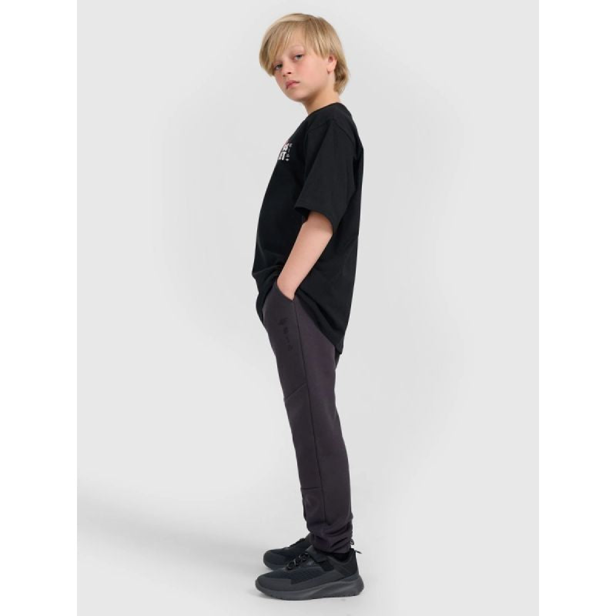 4F boys' sweatpants are a comfortable choice for school, active afternoons, and weekend relaxation. The medium-weight fabric and brushed interior provide comfortable warmth, while the loose fit and elastic cuffs ensure freedom of movement and a secure fit.