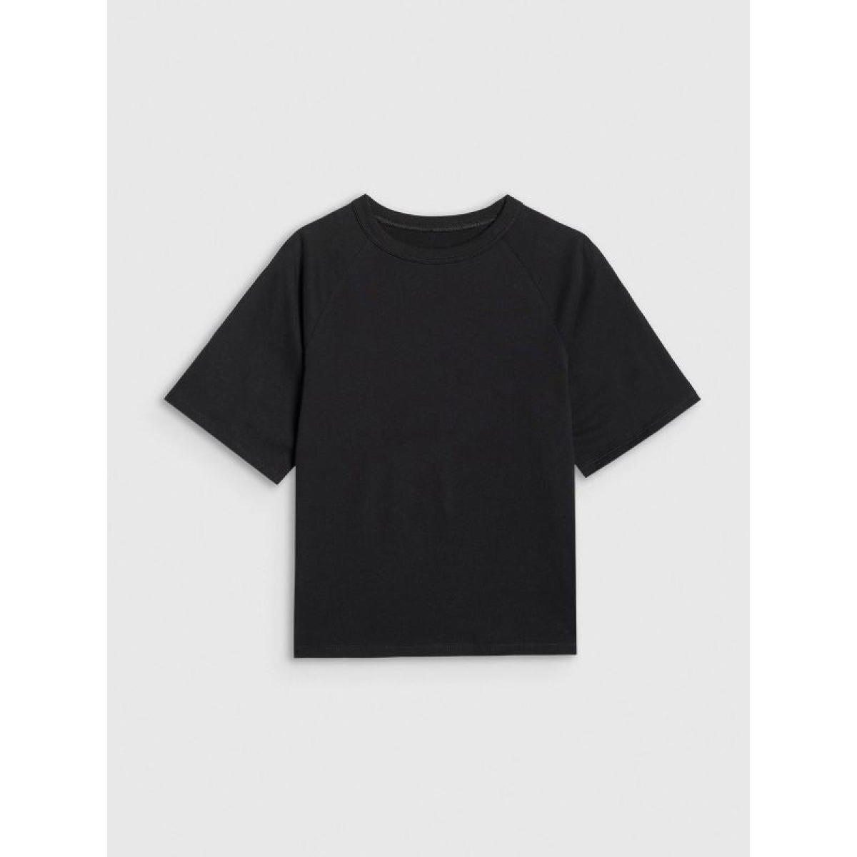 The round neckline is finished with light ribbed trim, and the raglan sleeves emphasize the sporty character and increase freedom of movement.