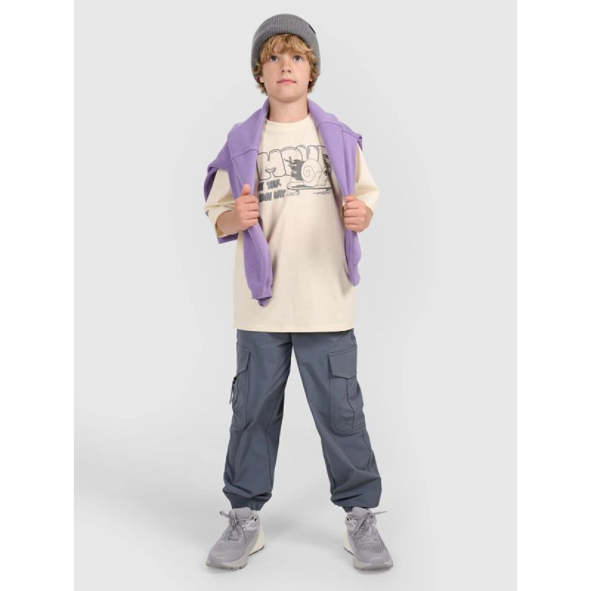 The 4F boys' T-shirt is the perfect everyday choice—for school, a walk, or playing with friends. Made of 100% soft cotton, it guarantees comfort and freedom of movement all day long. The loose, oversized cut ensures a flattering fit and allows for unrestricted movement.
