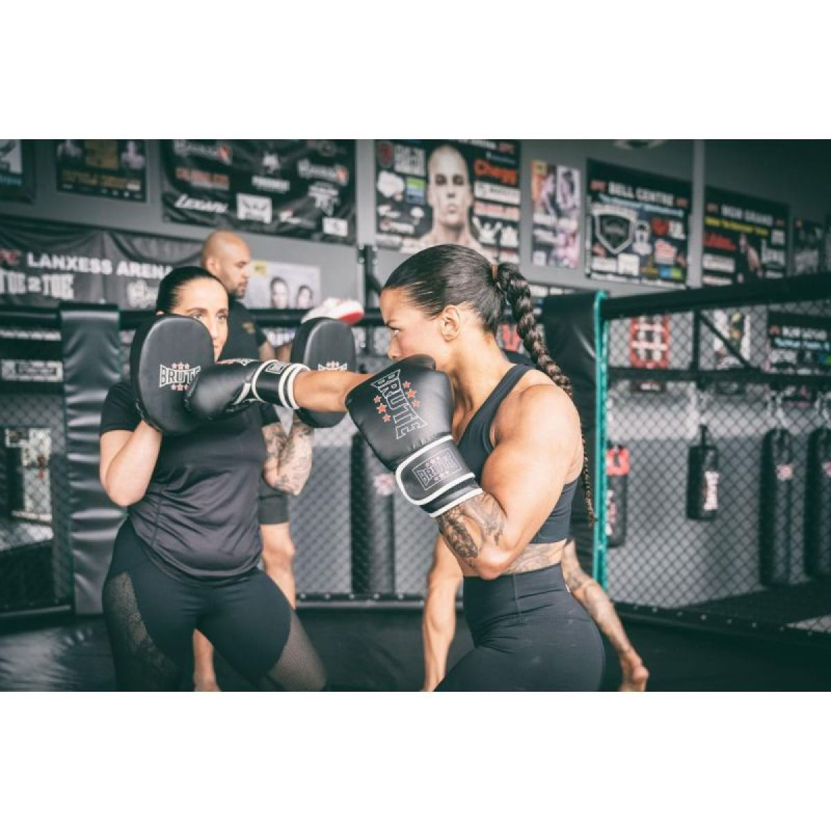 Brute is a brand that produces affordable, high-quality combat sports equipment. Their collection ranges from boxing and MMA gloves to punching bags and water bottles. Brute's brand ambassador is Dutch kickboxer, judoka, and Muay Thai fighter, 2014 Enfusion champion and 2016 Bellator Kickboxing flyweight champion, Denise Kielholtz, with whom they created the new boxing line.