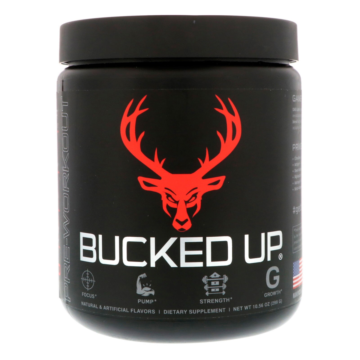 Recover Deer Antler Velvet 6 g Citrulline Pump 200 mg Alphasize Focus | Pump | Strength | Growth Natural & Artificial Flavors Dietary Supplement #Getbuckedup ActiGin AstraGin AlphaSize GMP- Good Manufacturing Practice - Consistent Quality Game Changing Formula: DAS Labs presents Bucked Up, a game-changing formula set to revolutionize pre-workout. This scientifically based, non-proprietary blend with no filters, is loaded with the most essential ingredients, including IGF-1 Deer Antler Velvet, to help enhance your workout. Prime Ingredients: Citrulline - 6 g to maximize blood flow (nitric oxide booster) Actigin - Increase VO2 Max & boost athletic performance Deer Antler Velvet - Supports accelerated recovery Alphasize - Clinically shown to sharpen mental focus. Astragin - Clinically shown to increase citrulline absorption by up to 66.7% Beta-Alanine - Promotes strength, endurance, & muscle growth