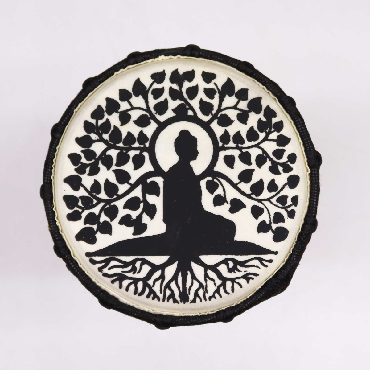 The Buddha design on the drumhead is an artistic element that adds a unique and spiritual dimension to the instrument. Buddha, a central figure in Buddhism, represents enlightenment, peace, and wisdom.