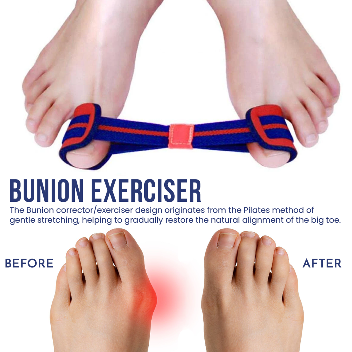 Bunionsa bony bump at the big toe jointcan cause pain, swelling, and foot shape changes if ignored. From London to Glasgow, UK customers trust this Bunion Exerciser Strap to tackle these issues head-on. Inspired by Pilates, it strengthens toes, aligns feet, and soothes inflammation, all while fitting seamlessly into your life. The smart way to step into comfort!