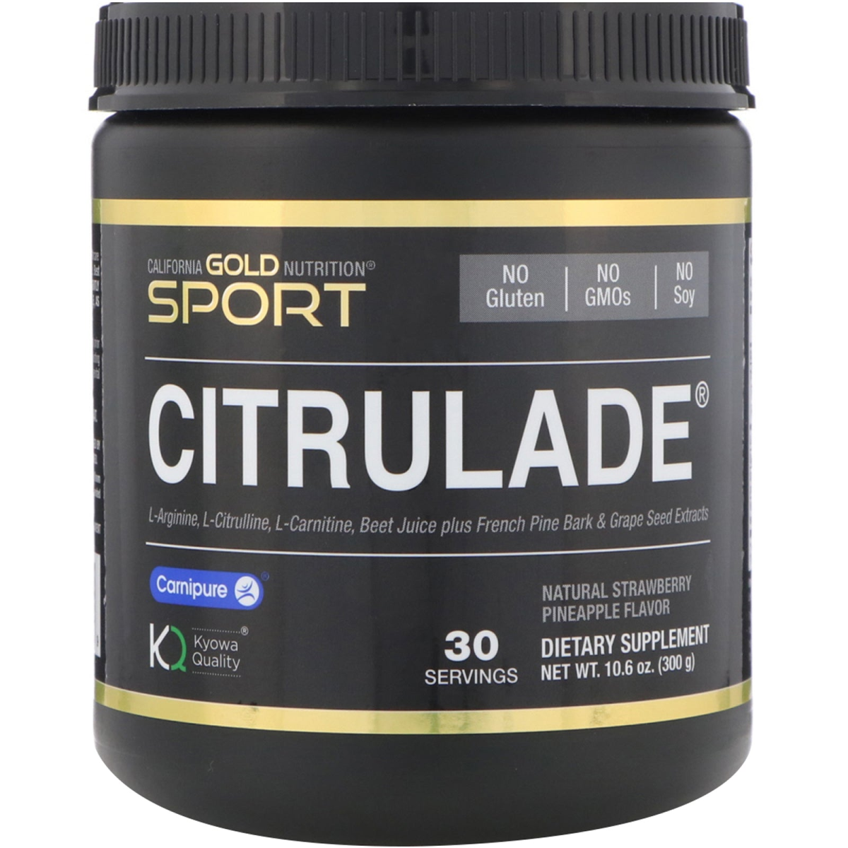 Nature Meets Performance Nutrition with Amino Acids Plus Phytonutrients Carnipure™ L-Carnitine Sourced from Switzerland Kyowa Quality® L-Arginine & L-Citrulline Sourced from USA Organic Beet Juice Powder Sourced from the USA Oligopin® Maritime Pine Bark Extract Sourced from France Vitaflavan® Grape Seed Extract Sourced from France Supports Vascular Blood Flow & Athletic Performance* Natural Strawberry & Pineapple Flavor 10.6 oz. (300 g) Powder – 30 Servings (10 g) Produced in a 3rd Party Audited cGMP Registered (Certified) Facility Formulated to Contain: No Gluten – No GMOs – No Soy 100% Gold Guarantee Formulated to assist athletic performance, each ingredient in Citrulade® was selected to support cardiovascular and sexual health by helping to improve vascular blood flow.* Citrulade® features Amino Acids plus Phytonutrients blended together to create a great tasting instant sports drink mix that can be mixed with purified water, your favorite fruit juice or into your daily smoothie. California Gold Nutrition® Sport Citrulade® is manufactured in the USA and meets or exceeds all qualitative and quantitative Quality Control specifications. iHerb Blog Post: Fitness-Friendly Citrulade Smoothies California Gold Nutrition® Certificate of Analysis