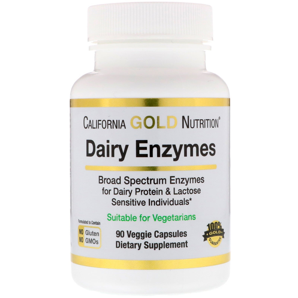California Gold Nutrition Dairy Enzymes Exclusively Featuring Deerland Enzymes Broad Spectrum Enzymes for Dairy Proteins & Lactose Sensitive Individuals* Dairylytic® Blend Manufactured in the USA Protease, 50,000 HUT - Lactase, 4,500 ALU 90 Veggie Capsules Suitable for Vegetarians Produced in a 3rd Party Audited cGMP Registered (Certified) Facility Formulated to Contain: No Gluten – No GMOs 100% Gold Guarantee Dairy Enzymes are a blend of enzymes formulated to help breakdown lactose as well as milk proteins. This dual functioning protease enzyme combo has been found to be helpful for people who experience digestive discomfort when consuming dairy products and don’t find relief from using a traditional lactase enzyme supplement.* California Gold Nutrition Dairy Enzymes feature Dairylytic®, a patented blend manufactured in the USA by Deerland Enzymes and undergoes multiple stages of Quality Control.