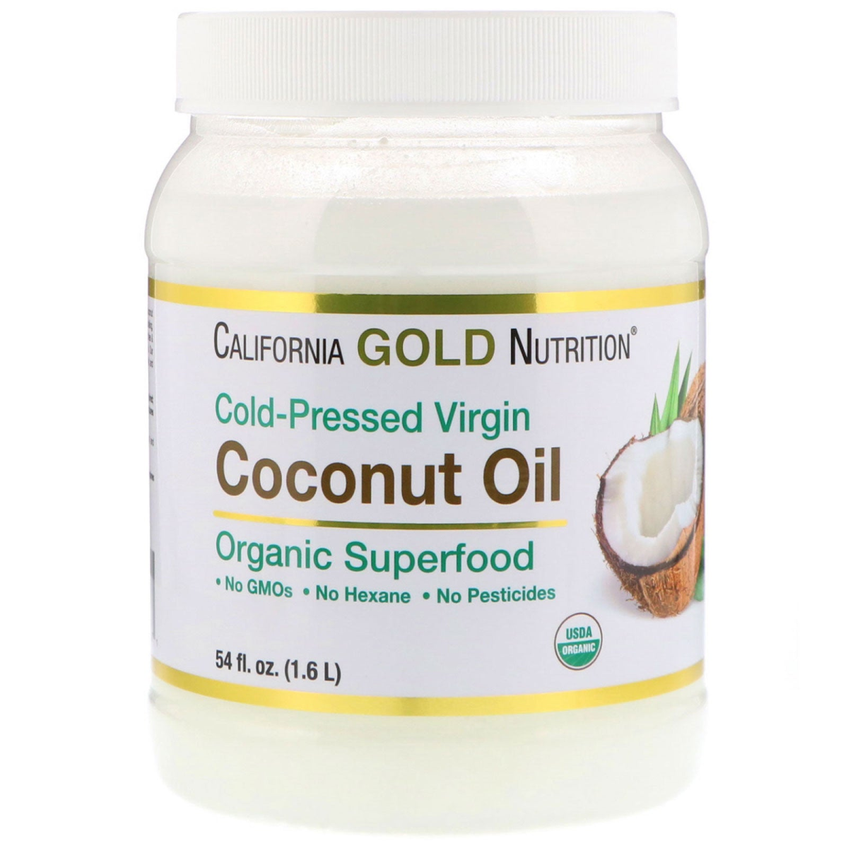 California Gold Nutrition® Virgin Coconut Oil, Cold Pressed & Unrefined Nourishing Superfood Suitable for Internal & External Use Smooth Coconut Aroma & Flavor Supports Brain Function & Promotes Weight Loss* Certified by Quality Assurance International (QAI) & USDA Formulated to Contain: No GMOs – No Hexane – No Pesticides Produced in a 3rd Party Audited cGMP Registered (Certified) Facility 100% Gold Guarantee Coconut is a superfood with a light tropical scent and flavor. Coconut oil is rich source of Medium Chain Triglycerides (MCTs), such as lauric, capric and caprylic acids, which studies have demonstrated to be supportive of energy production within the brain and, along with diet and exercise, promote weight loss.* Virgin Coconut Oil is made by cold pressing the liquid from coconut meat and then separating the oil without the use of bleach to produce a smooth unrefined virgin oil. It is GMO, Hexane and Pesticide free. California Gold Nutrition’s Virgin Coconut Oil is sourced from the Philippines, Vietnam, Sri Lanka and Indonesia, manufactured in the USA, Triple-Quality Tested and meet or exceed all qualitative and quantitative Quality Control specifications. IHERB BLOG LINK: The Health Benefits of Coconut Oil IHERB BLOG LINK: The Benefits of Coconut Oil for the Skin