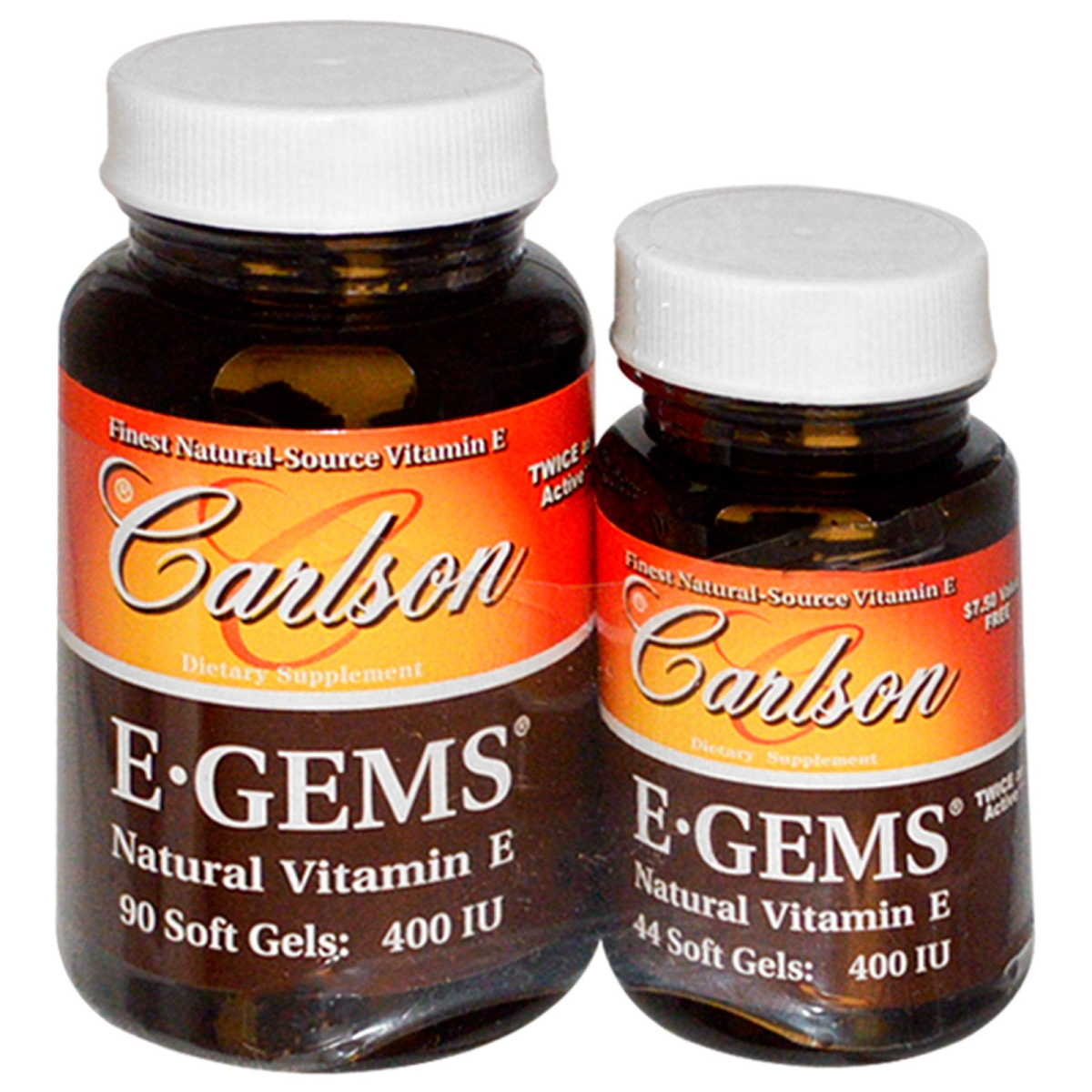 Carlson Labs, E-Gems, Natural Vitamin E, 400 IU, 2 Bottles, 90 Softgels + 44 Soft Gels