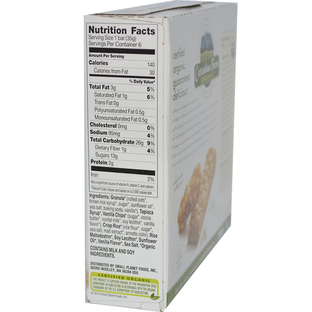 Founded in Skagit Valley, WA Since 1972 8 Grams Whole Grain No Hydrogenated Oils No Artificial Flavors or Preservatives USDA Whole Grain 8g or More per Serving Eat 48 g or More of Whole Grains Daily Certified . Guaranteed Delicious. Wholesome Rolled Oats Sweet Vanilla Chips Chewy Goodness! When we founded Cascadian Farm in 1972, we knew that good food started with caring for our land. We're still tending our farm in the foothills of Washington's Cascade Mountains and also partnering with other farmers who share our commitment to bringing you foods that are absolutely delicious. Why Eat ? Our foods are grown without the use of synthetic pesticides, chemical fertilizers or genetically engineered ingredients. Our foods contain no artificial flavors or preservatives. Our farming methods help protect and nurture the environment. This product is Certified by the Washington State Department of Agriculture in accordance with the standards of the USA Department of Agriculture.