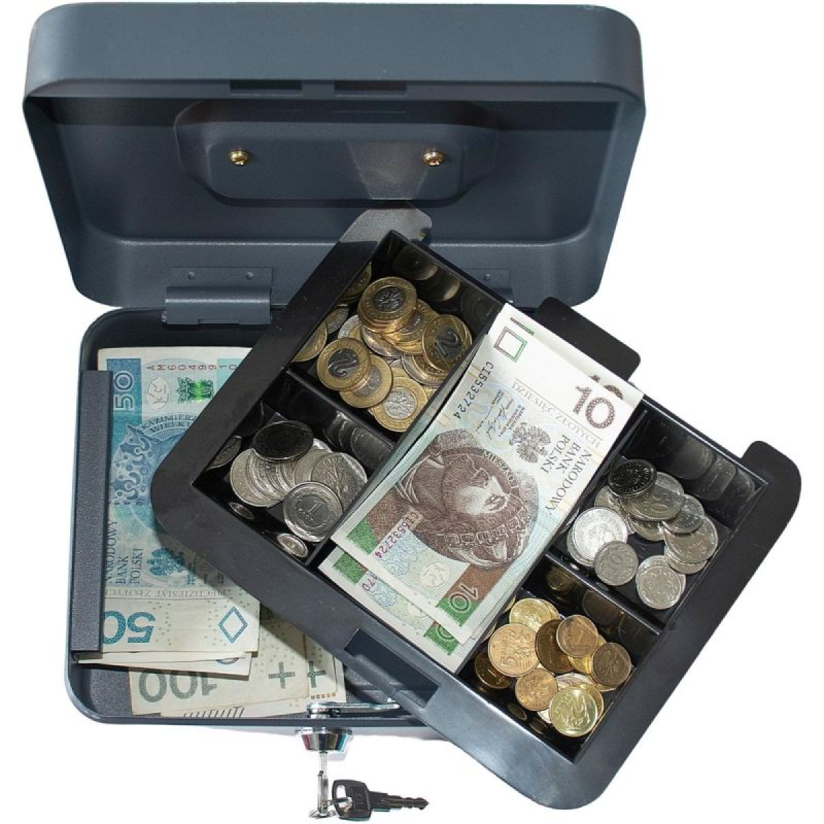 Thanks to its five-compartment insert, the cash box allows for easy organization of banknotes and coins, making it an ideal choice for shops, offices, and home users. The insert is made of durable ABS plastic, making it damage-resistant and easy to clean.