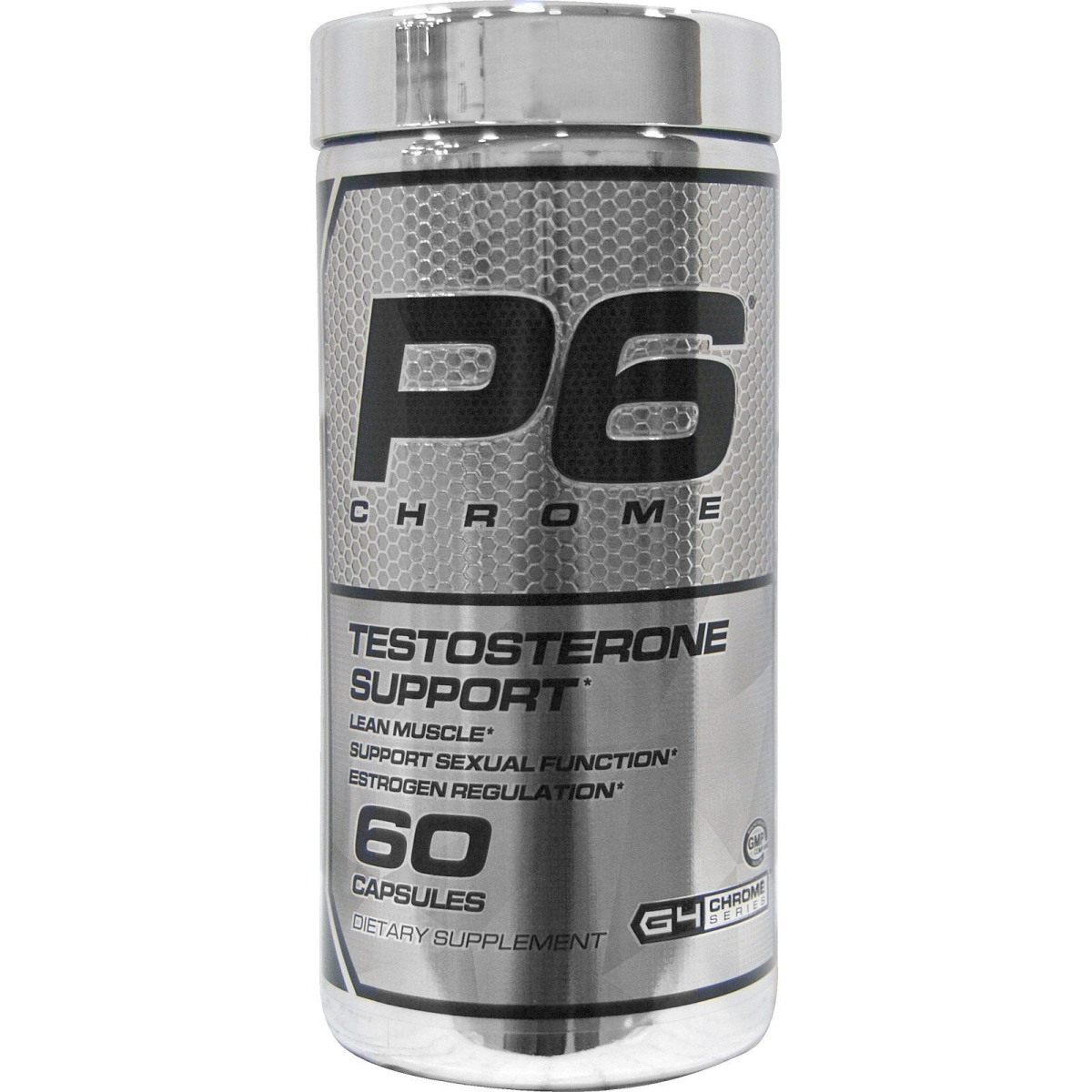 Testosterone Support Lean Muscle Support Sexual Function Estrogen Regulation Dietary Supplement G4 Chrome Series Nutrabolt Testosterone is associated with being strong, being lean and being on top of your game. But a drop in testosterone can leave you feeling the opposite. Amplify your testosterone with P6 Chrome. P6 Chrome contains five essential ingredients in a compelling proprietary blend to improve the body's environment for healthy testosterone levels. These ingredients act together to support testosterone and regulate estrogen, so that you can enhance lean muscle and improve sexual function