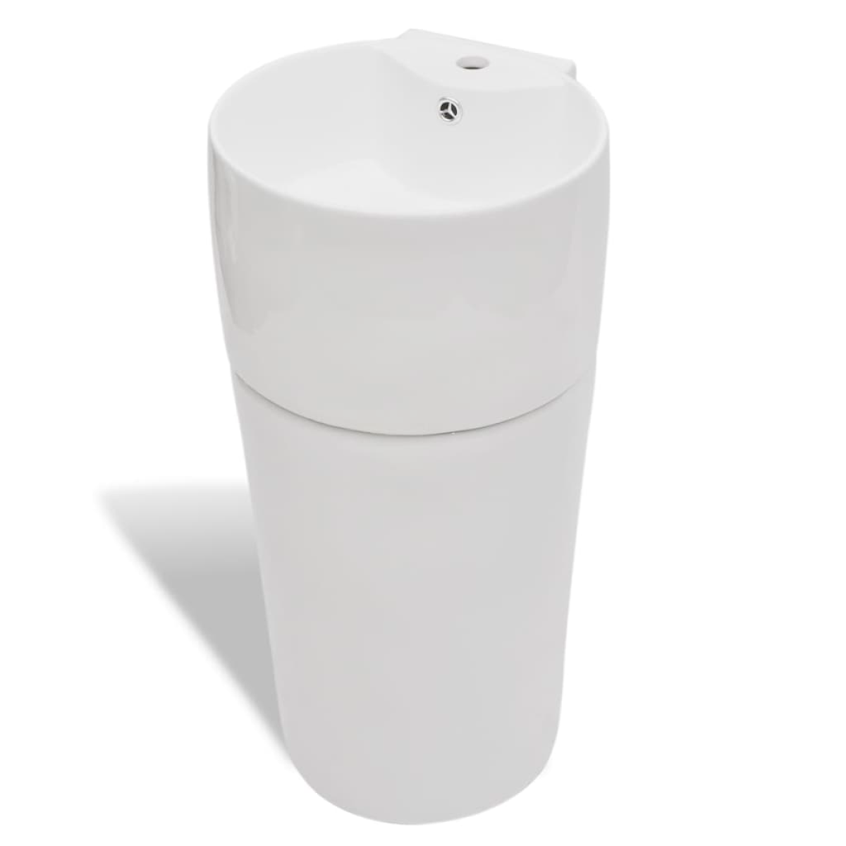 This stand wash basin, made of premium ceramic, will be a stylish addition to any bathroom, washroom or powder room. Its high gloss finish brings a modern yet elegant design. This artistic ceramic basin is more than just a practical vessel for everyday use, but it is an adornment for your living space. It will definitely suit any interior style. In addition, the basin is quite easy to clean. An overflow hole is equipped to flow water out when it gets too full. A 3.5 cm faucet hole is included to install a tap. The drain hole is 4.5 cm in diameter. Please note that the tap is not included in delivery. If you want to wall mount this basin, it needs to be supported by a pair of brackets. Please note these brackets are not included in the delivery.