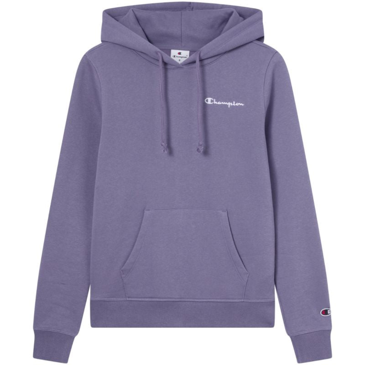 Champion Women's Hooded Sweatshirt, Purple 118403 VS099. This Champion women's sweatshirt is perfect for everyday wear. Slim fit. Ribbed cuffs and hem. Kangaroo pocket. Adjustable hood with drawstring. Subtle logo on the chest. Small logo on the sleeve. Material: 70% cotton, 30% polyester