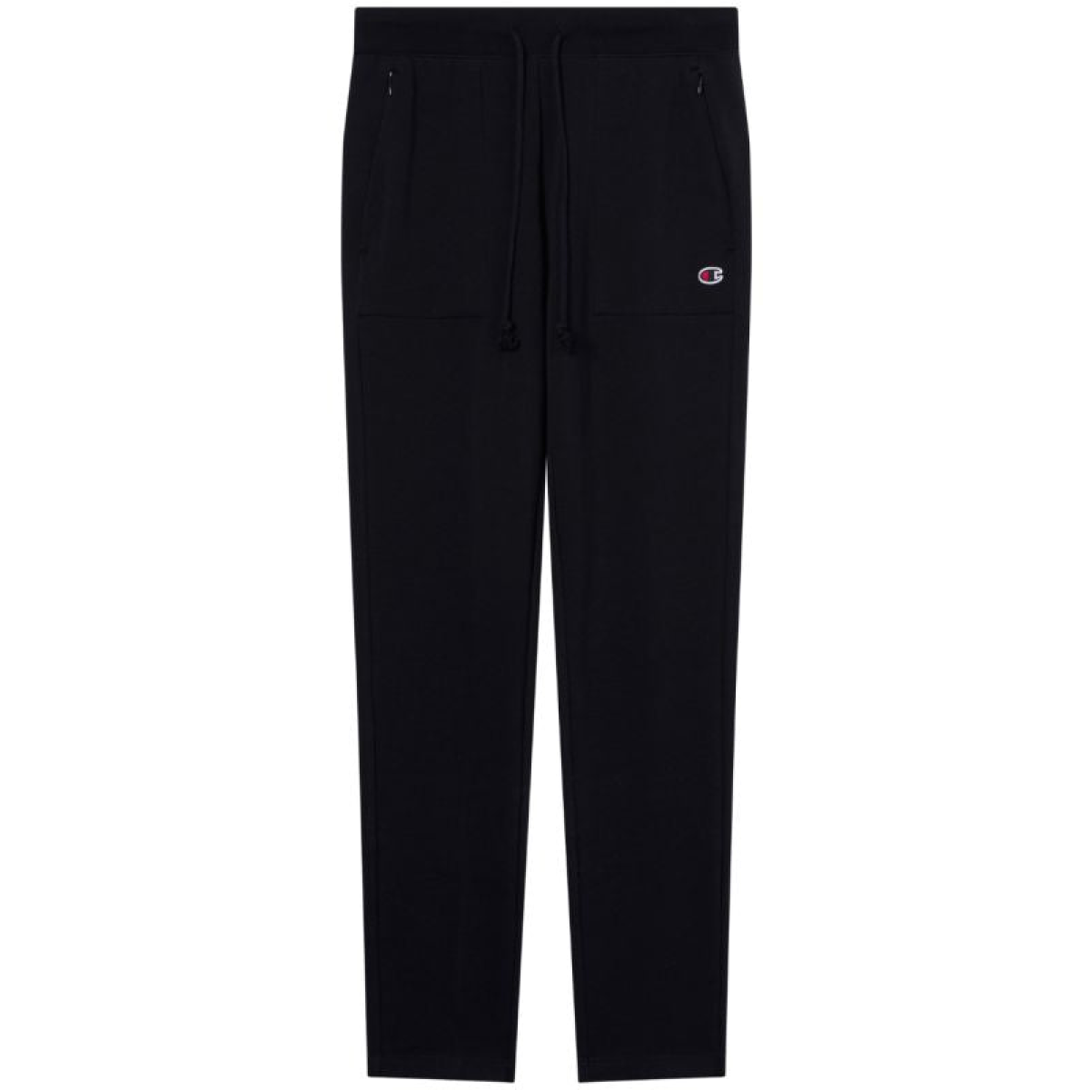 Champion Slim Pants Black 118041 KK001 Women's Champion sweatpants are perfect for everyday wear. Soft knit fabric. Zippered side pockets. No cuffs. Slim fit. Drawstring waist adjustment. Elastic waistband. Material: 80% cotton, 15% polyester, 5% elastane