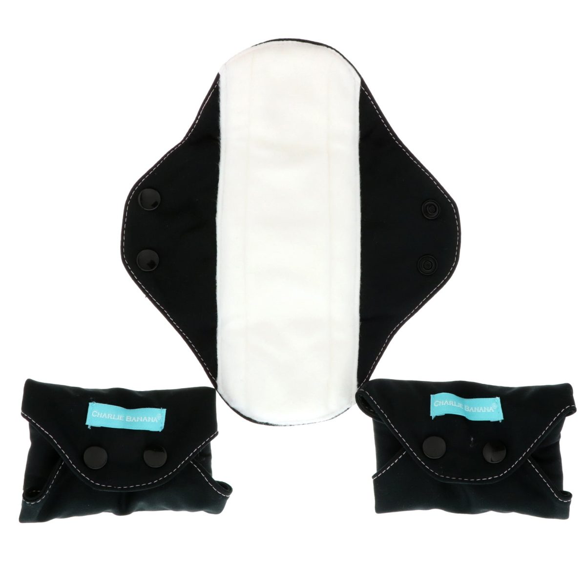Perfume Free, Chlorine Free, Stain Free Healthy, Comfortable, Economical, Eco Friendly 2 Snaps The Softest, Absorbent and Stylish Washable Pad Why Use Charlie Banana Feminine Pads? Many women are sensitive to chemicals commonly found in Disposable Pads. Gynecologists have advised women to use alternative products without perfumes, bleach or containing any super absorbent chemicals. Out products are healthier for young girls and women. Gentle every time. Once you try you will never want to go back! Our Feminine Pads are so comfortable, stylish, a much healthier alternative than conventional disposable. They are easy to wash, UNBELIEVABLY stain free, and naturally super absorbent. Wear them everyday, at work, at home, while exercising, ideal while traveling. They will stay in place!!! Size: 10"L x 3.2"W (25 cm L x 8 cm W) Includes: 3 Feminine Pads + 1 Carry Tote Bag