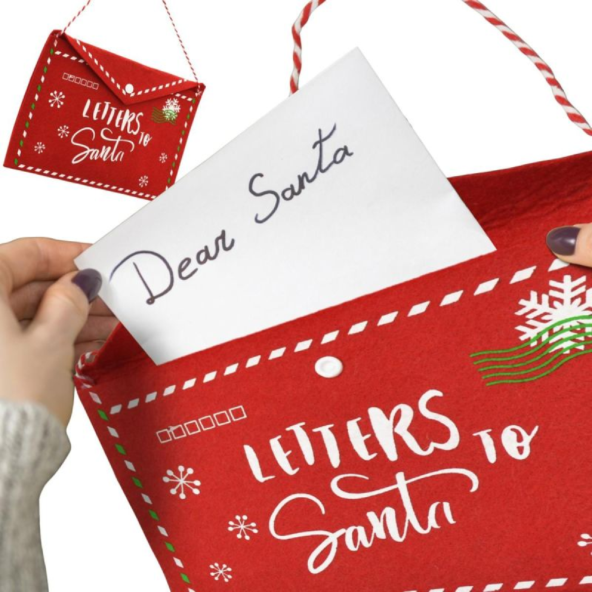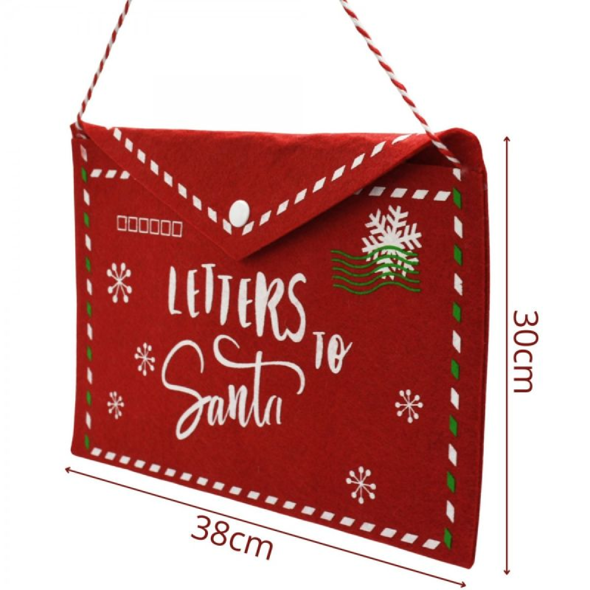 The FELT CHRISTMAS ENVELOPE FOR LETTER TO SANTA 38x30CM LETTERS SANTA is a symbol of anticipation for the holidays. Hung on a Christmas tree, door, or fireplace, it will become a place where children will leave their letters to Santa. Thanks to its sturdy construction, it will last for many seasons and bring the magic of Christmas into your home every time.