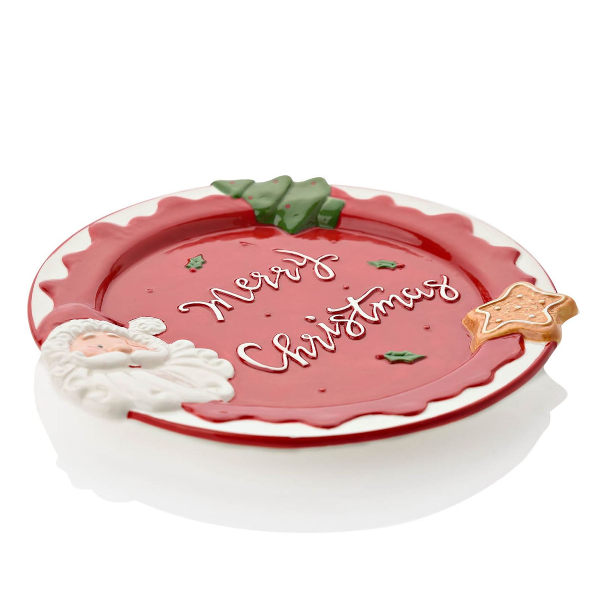Perfect for parties this festive season, serve food on this cheerful 'Merry Christmas' plate. With an adorable santa face, gingerbread cookie, and christmas tree design, this is sure to brighten up the dinner table this holiday season.