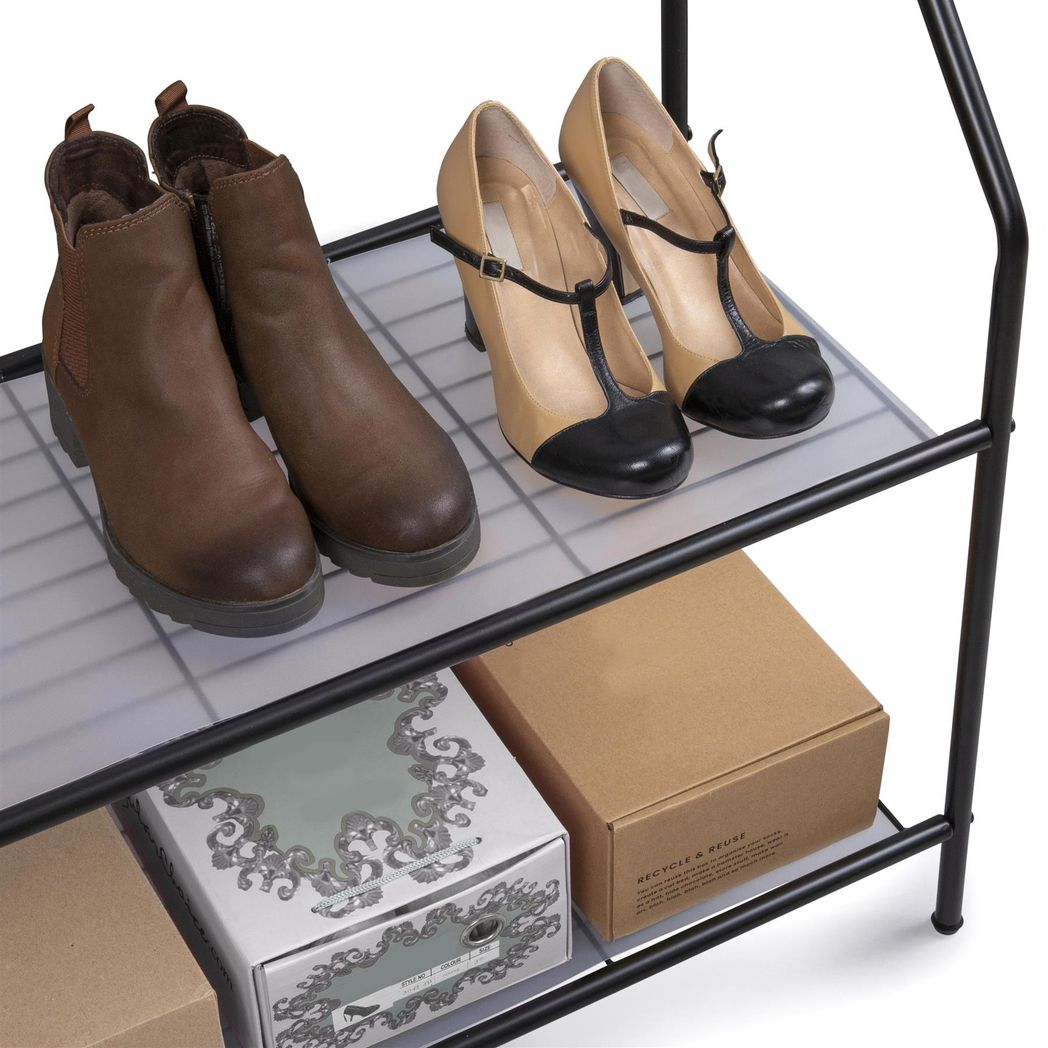 The clothes storage rail features 2 handy hooks on either side which are perfect for hanging bags, umbrellas, scarves and other accessories. The 2 lower shelves provide extra storage and organisation for shoes, boxes and baskets.