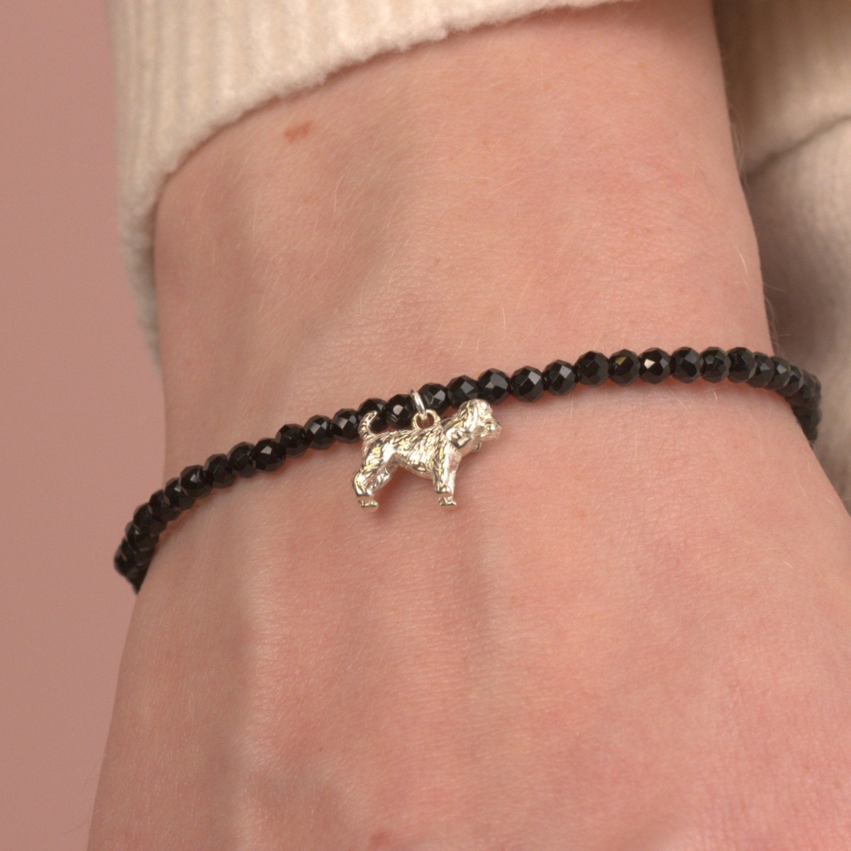 Celebrate your beloved Cockapoo with this personalised Cockapoo bracelet made with your choice of semi precious stones. Whether it’s a thoughtful birthday gift for a dog mum or a heartfelt keepsake for a pet parent, this bracelet is a beautiful way to honour the special bond you share. Choose from a Black Onyx, Rose Quartz, Red Aventurine, Amethyst, Opal or Turquoise bracelet.