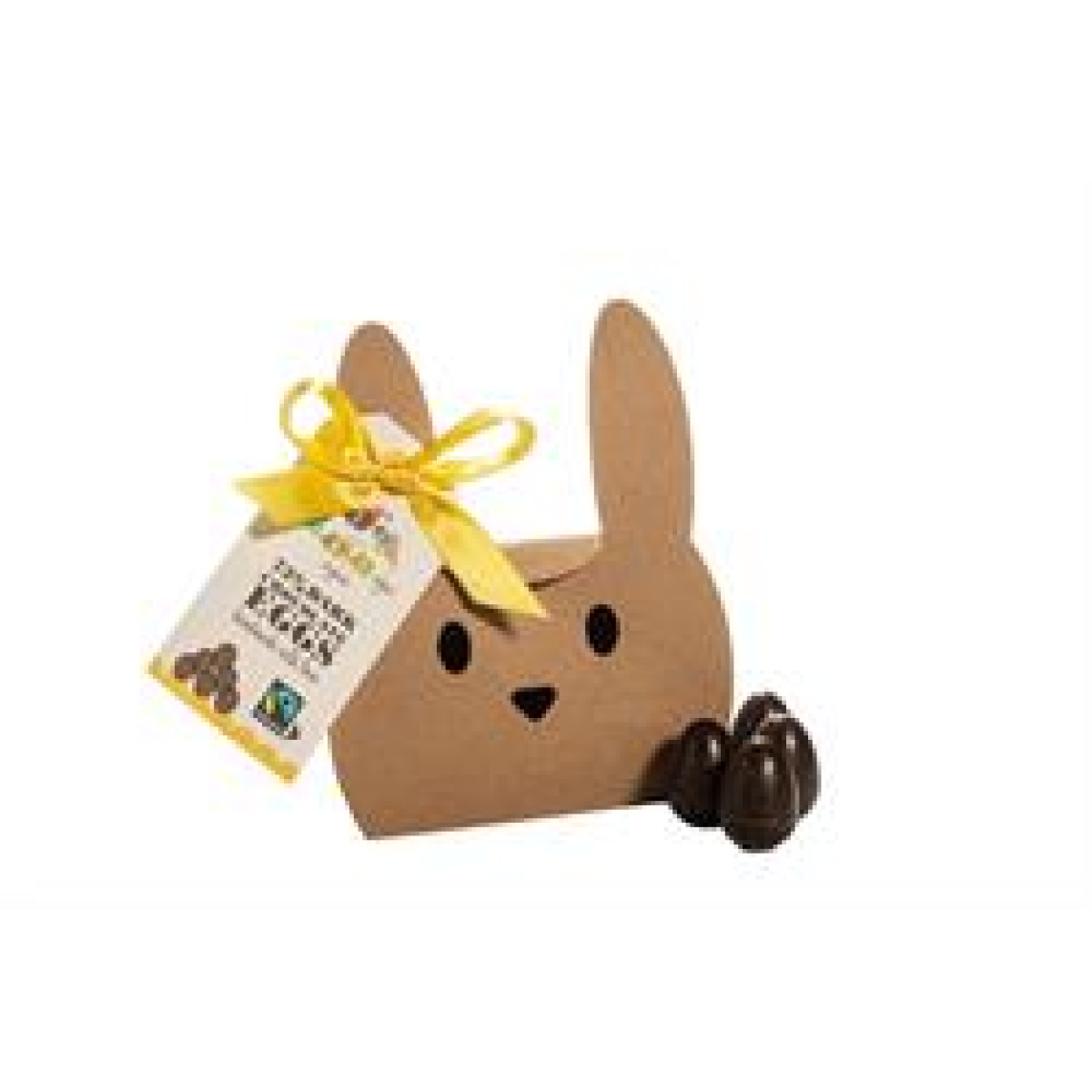 "Our cute bunny box contains 12 handmade rich, 'oh so solid' 73% dark chocolate mini eggs which are perfect for sharing (or hiding and enjoying in your 'me time' moments). Vegan, Fairtrade certified, palm oil free and organic too!