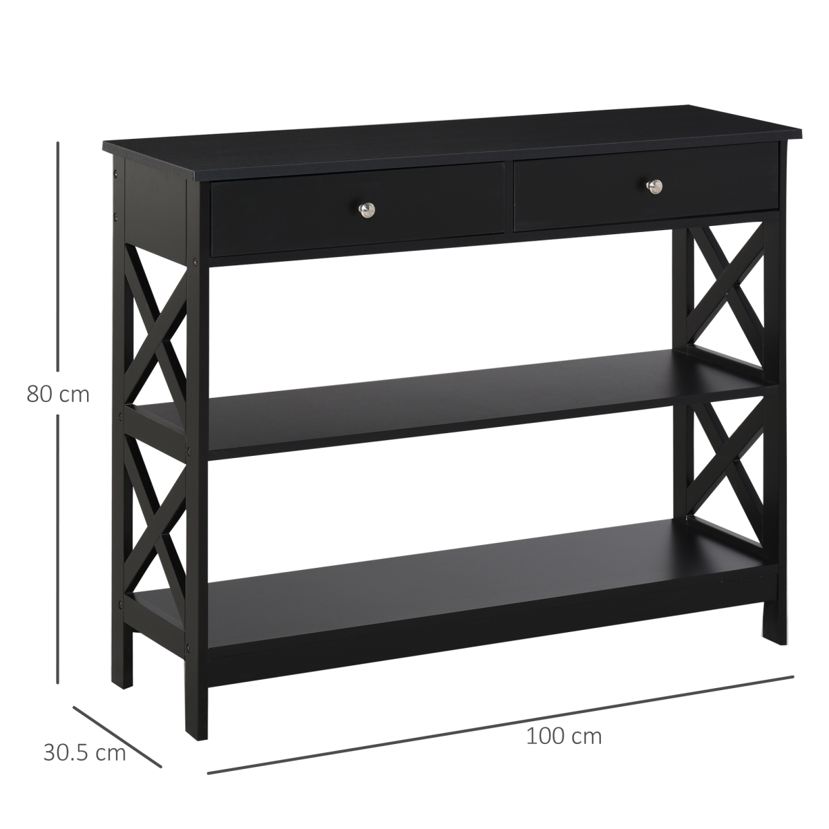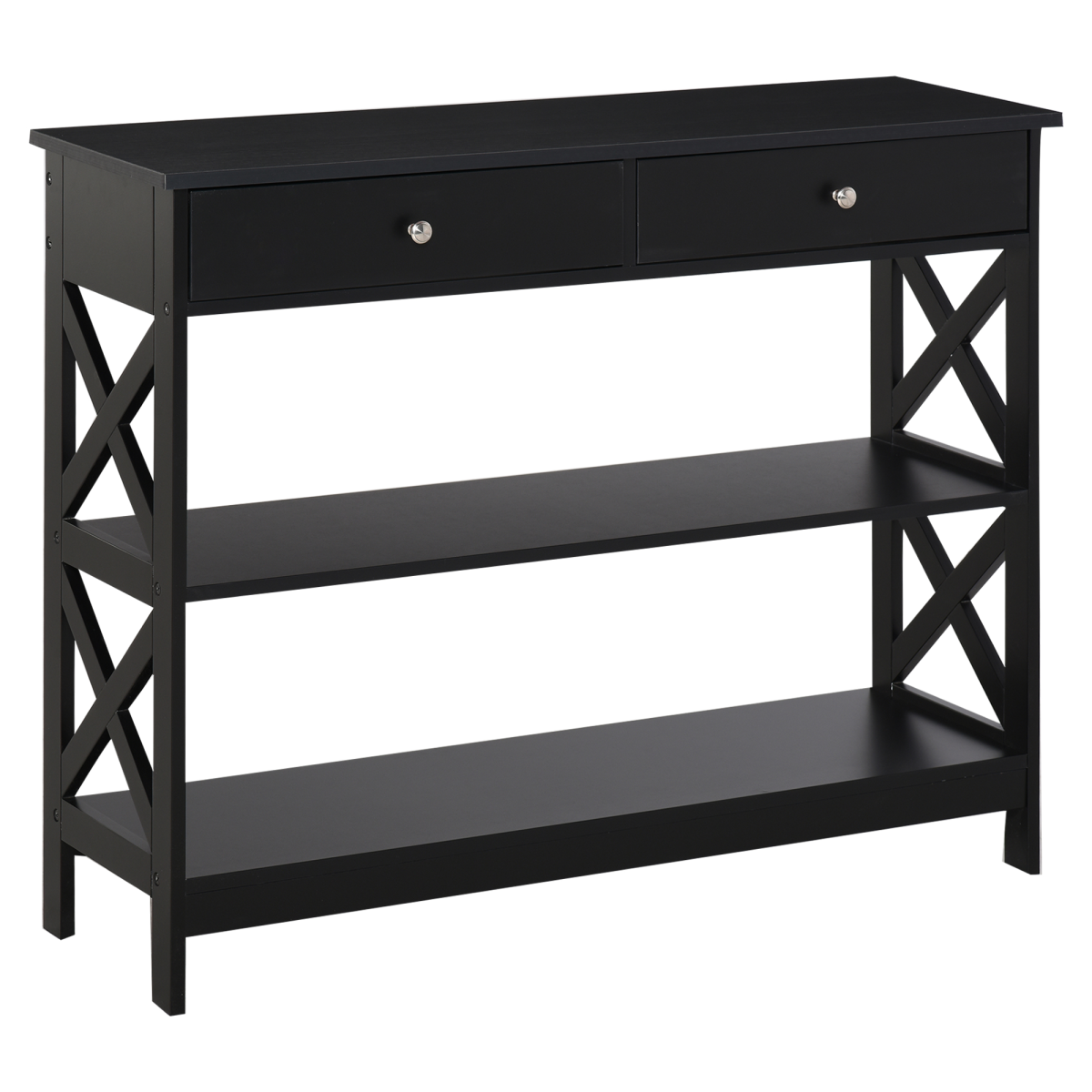 Console Table Side Desk Shelves Drawers Open Top Hallway Black