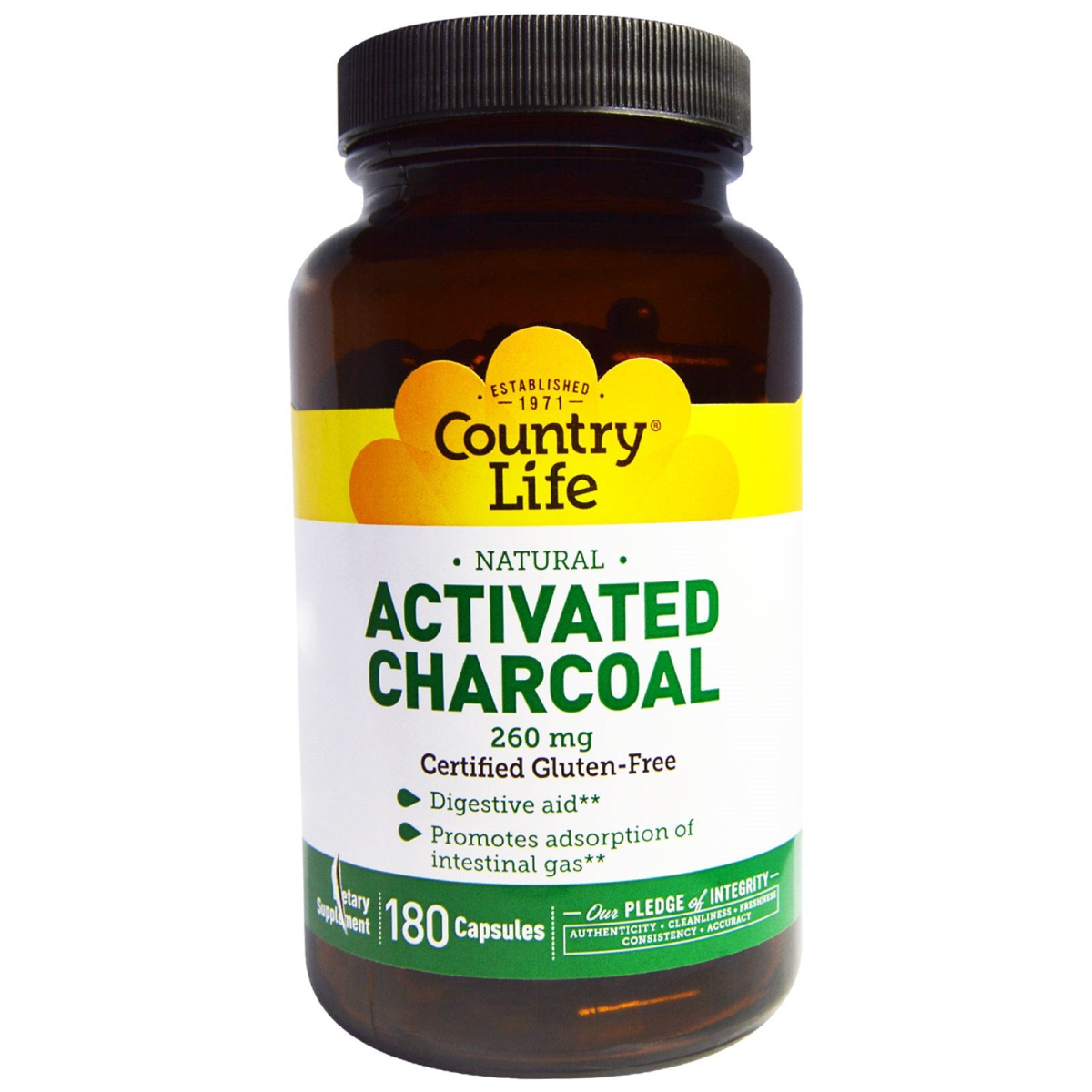 Country Life, Activated Charcoal, 260 mg, 180 Capsules