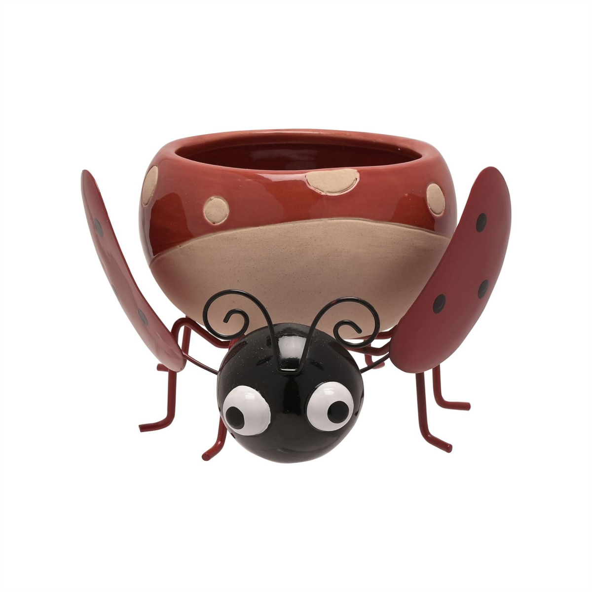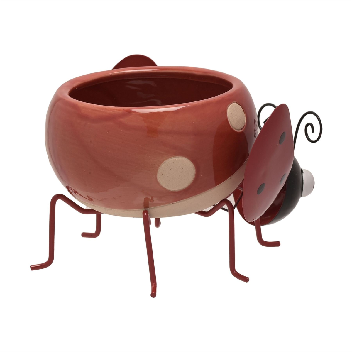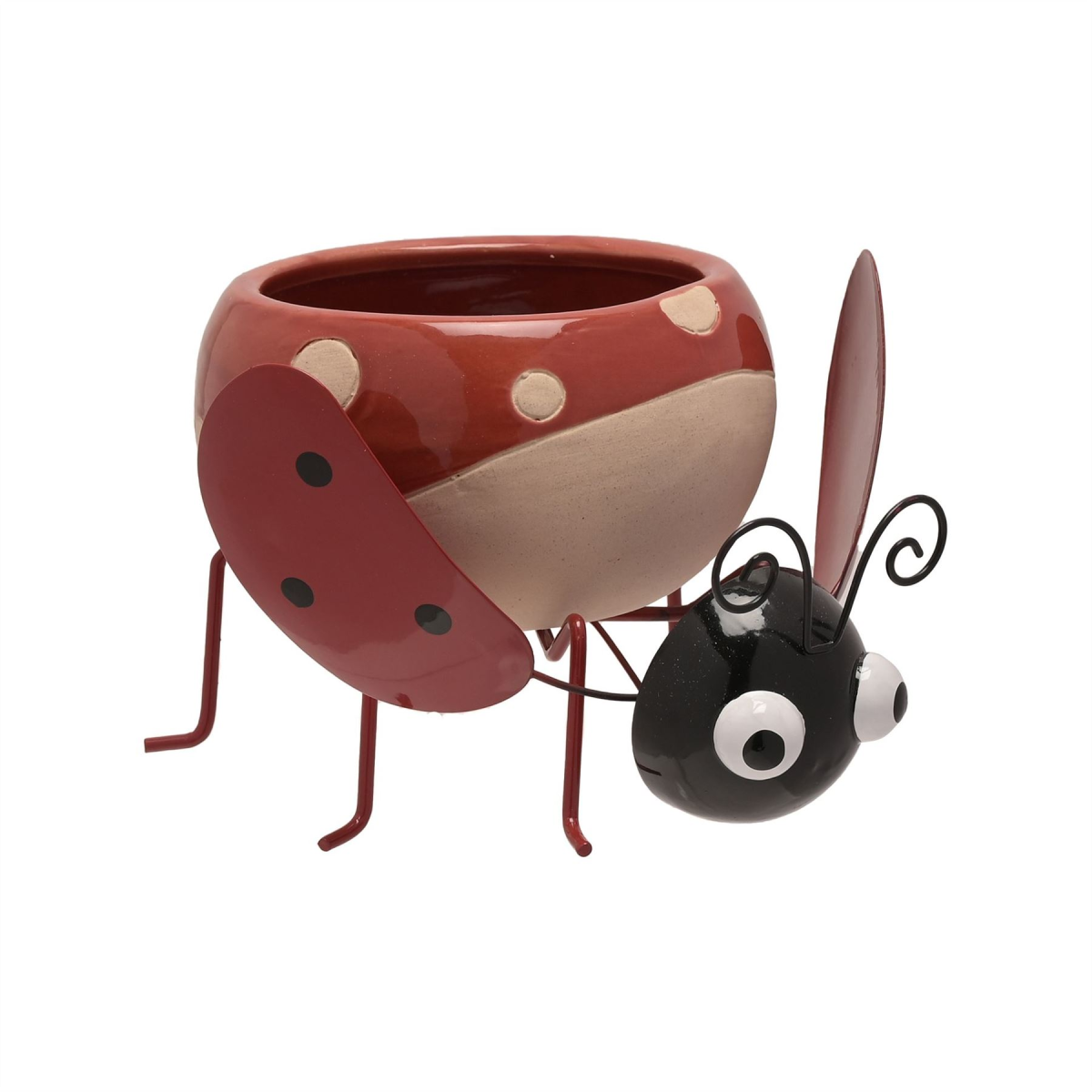 A ceramic ladybird planter by COUNTRY LIVING�. This fun-filled planter makes a true statement piece for plants which can be enjoyed both indoors and outdoors. The ceramic planter showcases a gorgeous ladybird design, complete with red gloss finish. It is completed by black metal body parts and red spotted wings. The planter is packaged in bulk packaging.