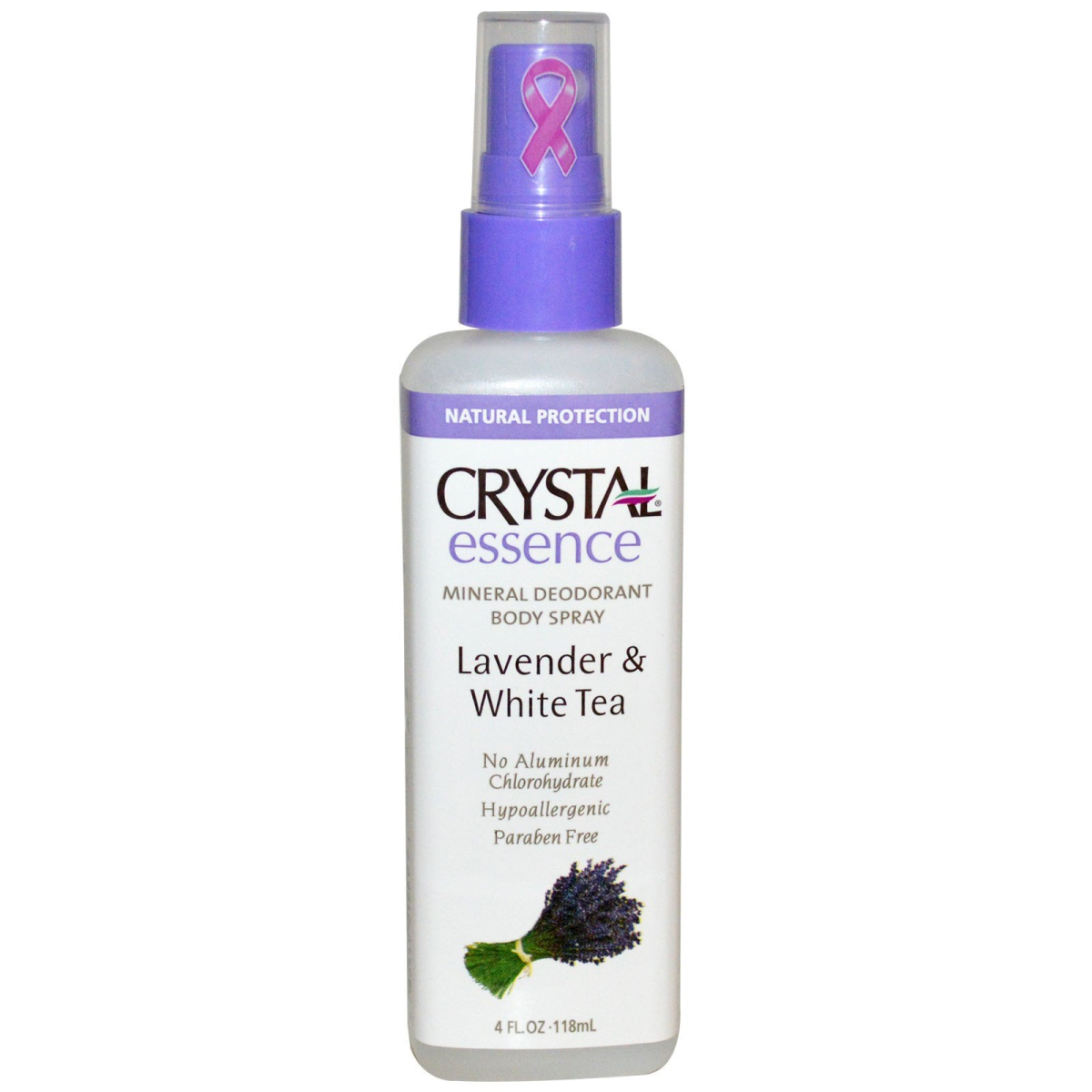 Natural Protection No Aluminum Chlorohydrate Hypoallergenic Paraben Free Safe For The Environment Prevents Body Odor 24 Hours Natural Deodorant Protection Crystal essence Lavender & White Tea, made of natural mineral salts and infused with the relaxing aromas of lavender and white tea, creates an invisible protective barrier against odor-causing bacteria. Lavender, known as an anti-inflammatory and white tea, as a natural relaxant, combine to form an essence that pleases rather than overpower the senses. Crystal essence is long-lasting, non-sticky, non-staining and leaves no white residue.