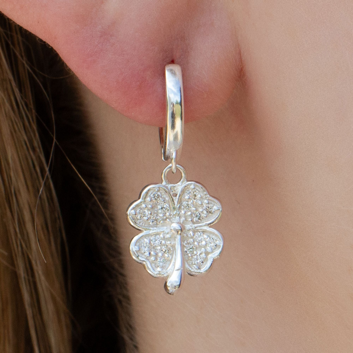 Add a timeless and elegant touch to your jewellery collection with our Crystal Four Leaf Clover Earrings, crafted from solid 925 sterling silver. Featuring a beautifully shaped four leaf clover charm.
