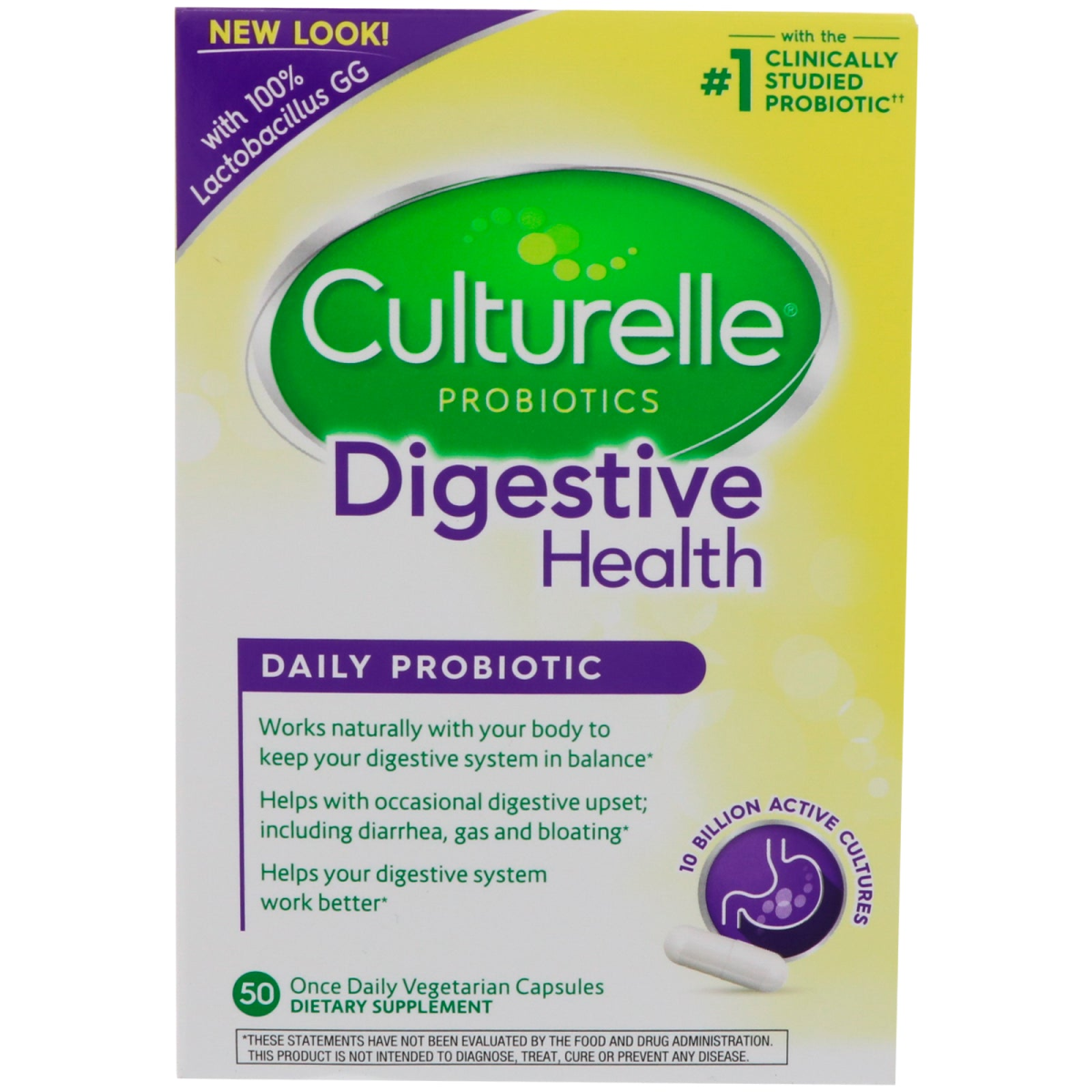 With 100% Lactobacillus GG With The #1 Clinically Studied Probiotic Works Naturally With Your Body To Keep Your Digestive System In Balance Helps With Occasional Digestive Upset; Including Diarrhea, Gas and Bloating Helps Your Digestive System Work Better 10 Billion Active Cultures Purity and Potency Guarantee Culturelle Digestive Health When the natural balance of good bacteria in your digestive tract is disturbed, your digestive system is open to a variety of issues. So, it is Important to Take Charge of your Digestive Health Every Day! Only Culturelle Digestive Health contains 10 billion live active cultures of Lactobacillus GG, the most clinically studied probiotic strain††to help your digestive system work better, plus the prebiotic Inulin. Lactobacillus GG works natural with your body to help: Keep you digestive system in balance. Reduce the likelihood of occasional diarrhea, gas and bloating. Minimize travel-associated stomach and digestive issues. Culturelle Digestive. At the Core of Good Health Take charge of your digestive health with Culturelle at the core of your daily wellness routine. When making changes to your diet is not enough, adding a daily probiotic can help keep your digestive system in check. Only Culturelle Combines... The leading brand with 100% Lactobacillus GG§§ With Lactobacillus GG, the #1 World's Most Researched Probiotic and subject of over 1000 scientific studies.††Guaranteed potency through the expiration date vs. just the time of manufacture***. The #1 Pharmacist Recommended Probiotic Brand†â€