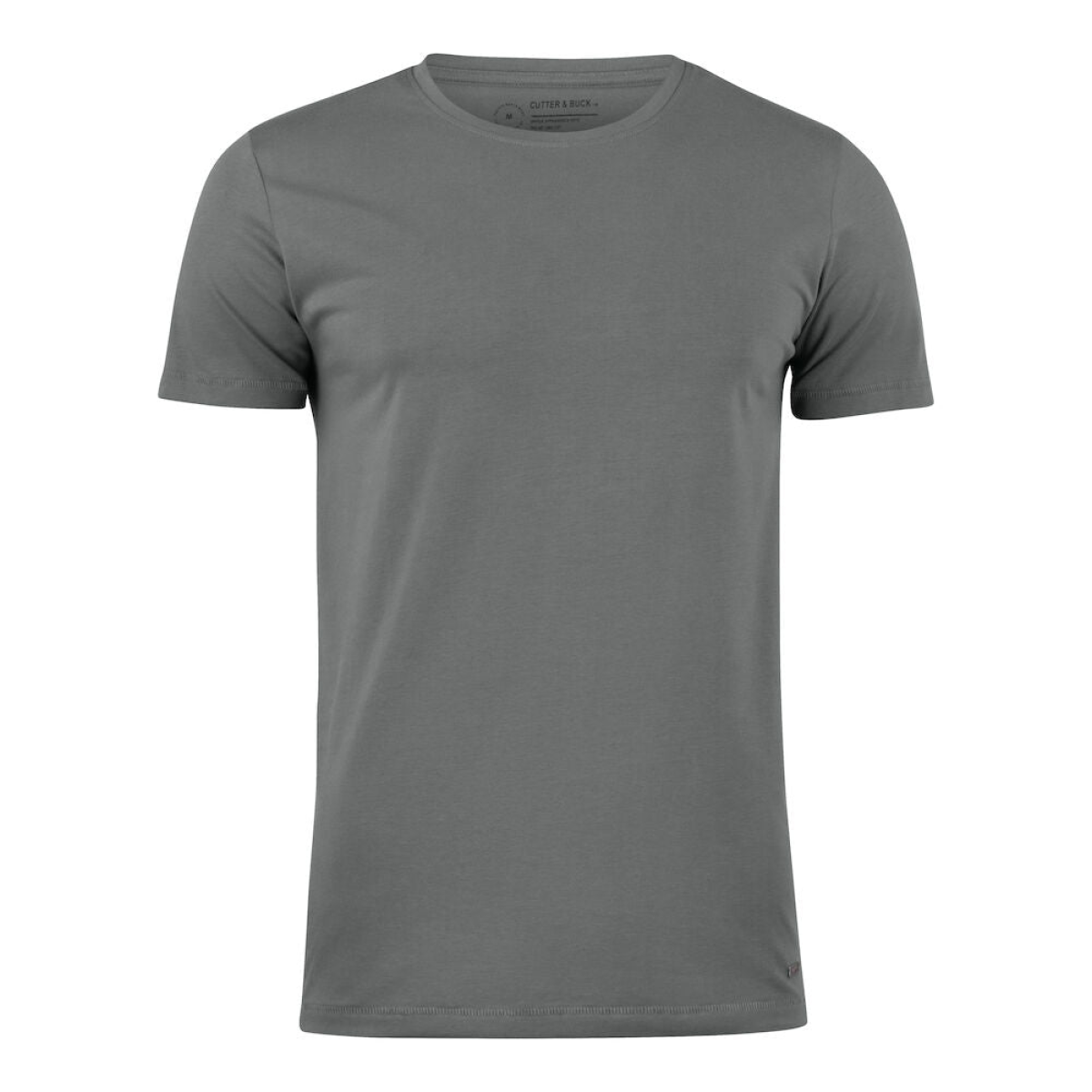 Stretchy soft classic roundneck t-shirt for everyday use. Modern fit and decorated with a small metal tab label at the front bottom. Side seams.