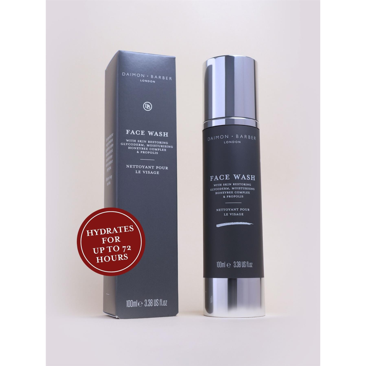 Our Age Defence Face Wash is a vegan-friendly cleanser that effectively cleanses without drying. With rich Saccharide Isomerate derived from plants, it binds moisture to the skin, creating a lasting hydration barrier. Key ingredient Pro Vitamin B5 repairs, protects, and enhances skin texture and tone. Experience the refreshing effects of Daimon Barber's AGE DEFENCE Face Wash, providing up to 72 hours of hydration. Free from parabens and harsh chemicals, sourced from the UK.