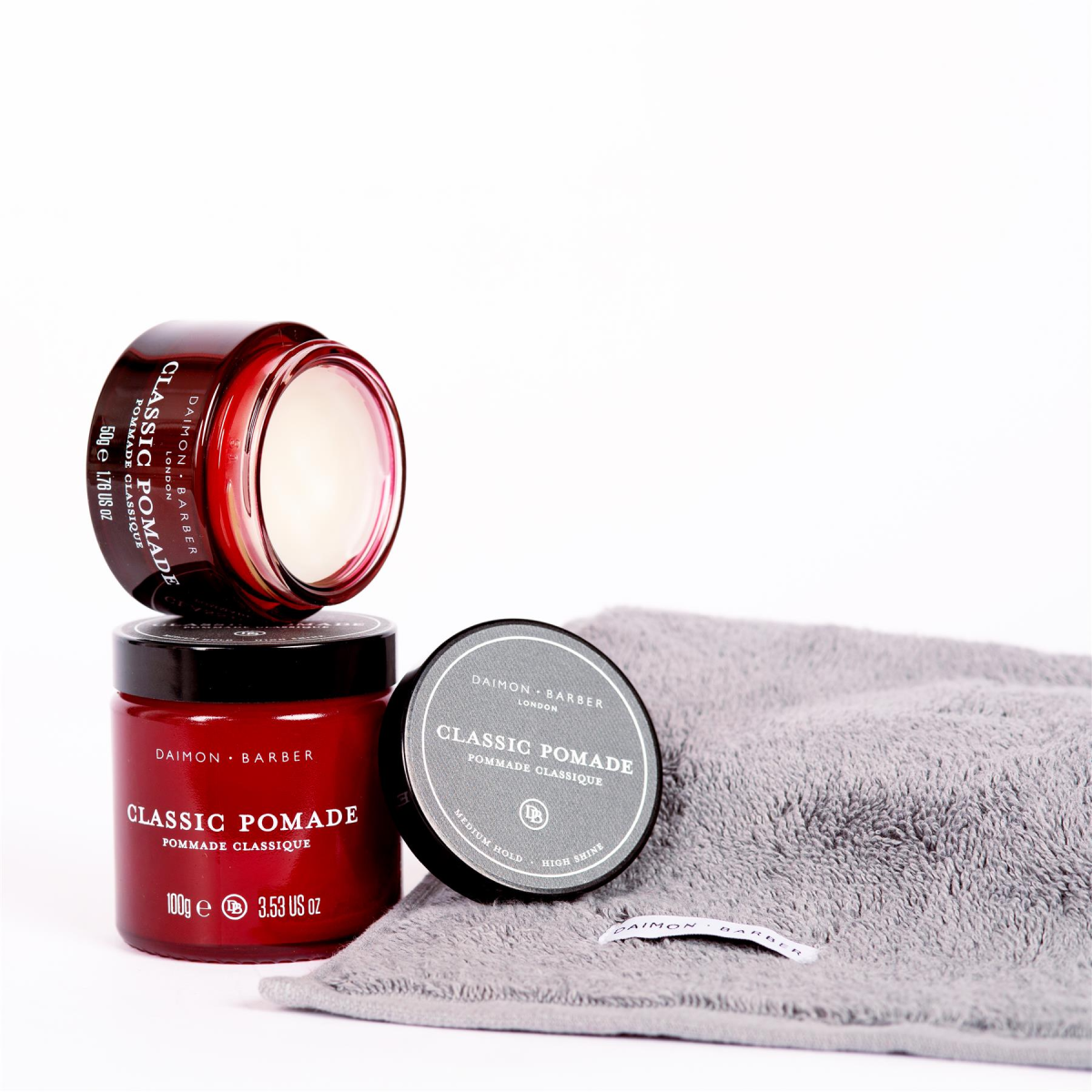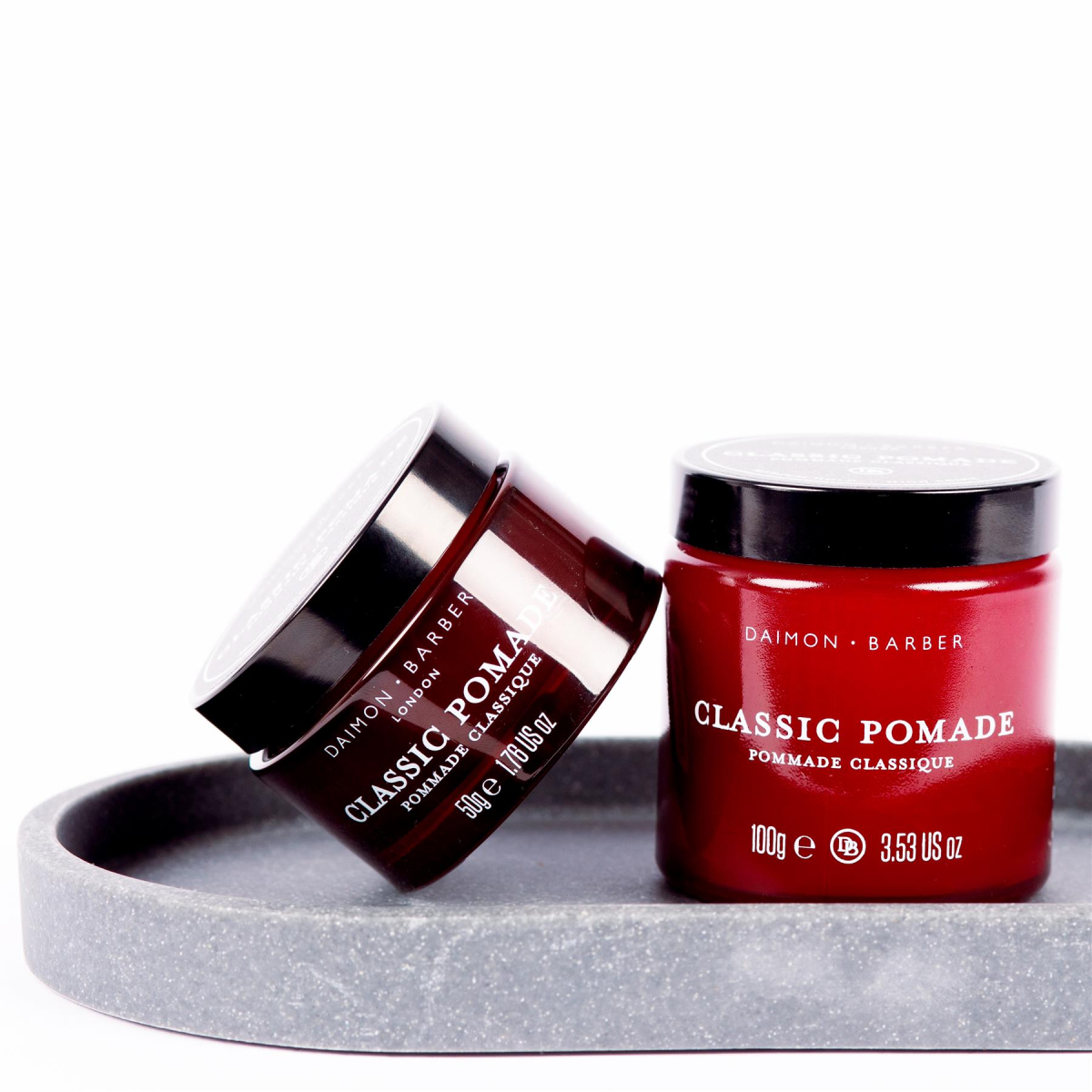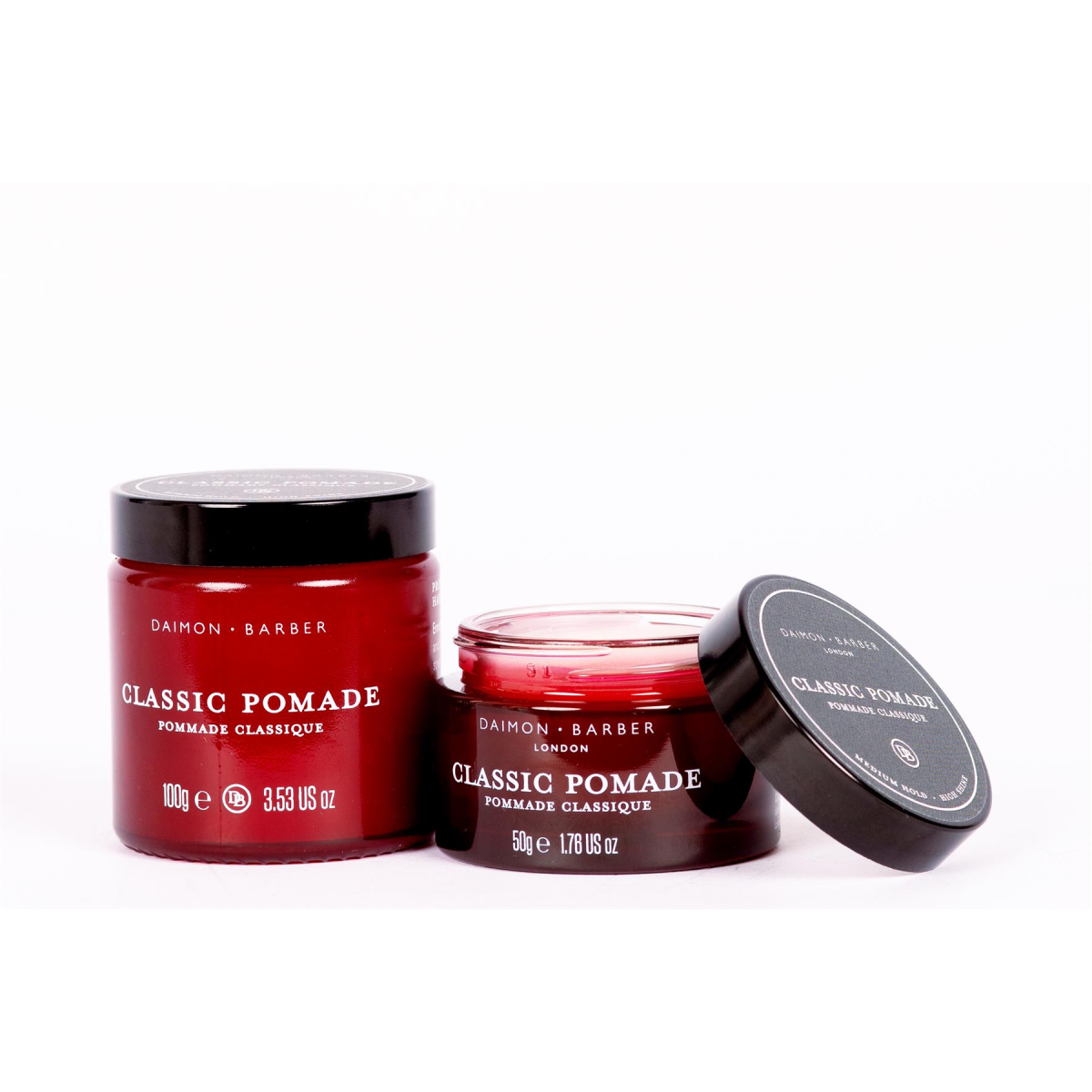 Our Classic Pomade is an oil based pomade formulated with Avocado and Coconut Oils. These special oils nourish the scalp and keep the hair strong and healthy while Beeswax and Micro Wax are added to provide malleable but effective hold. This Pomade is perfect for showcasing many styling techniques, has "uber control" and is easily applied. Scented with a complex combination of spices including Black Pepper and Nutmeg our Classic Pomade provides a classic and delicious fragrance. For all hair types. This pomade is free from parabens and nasty chemicals, and all our ingredients are sourced from the UK.