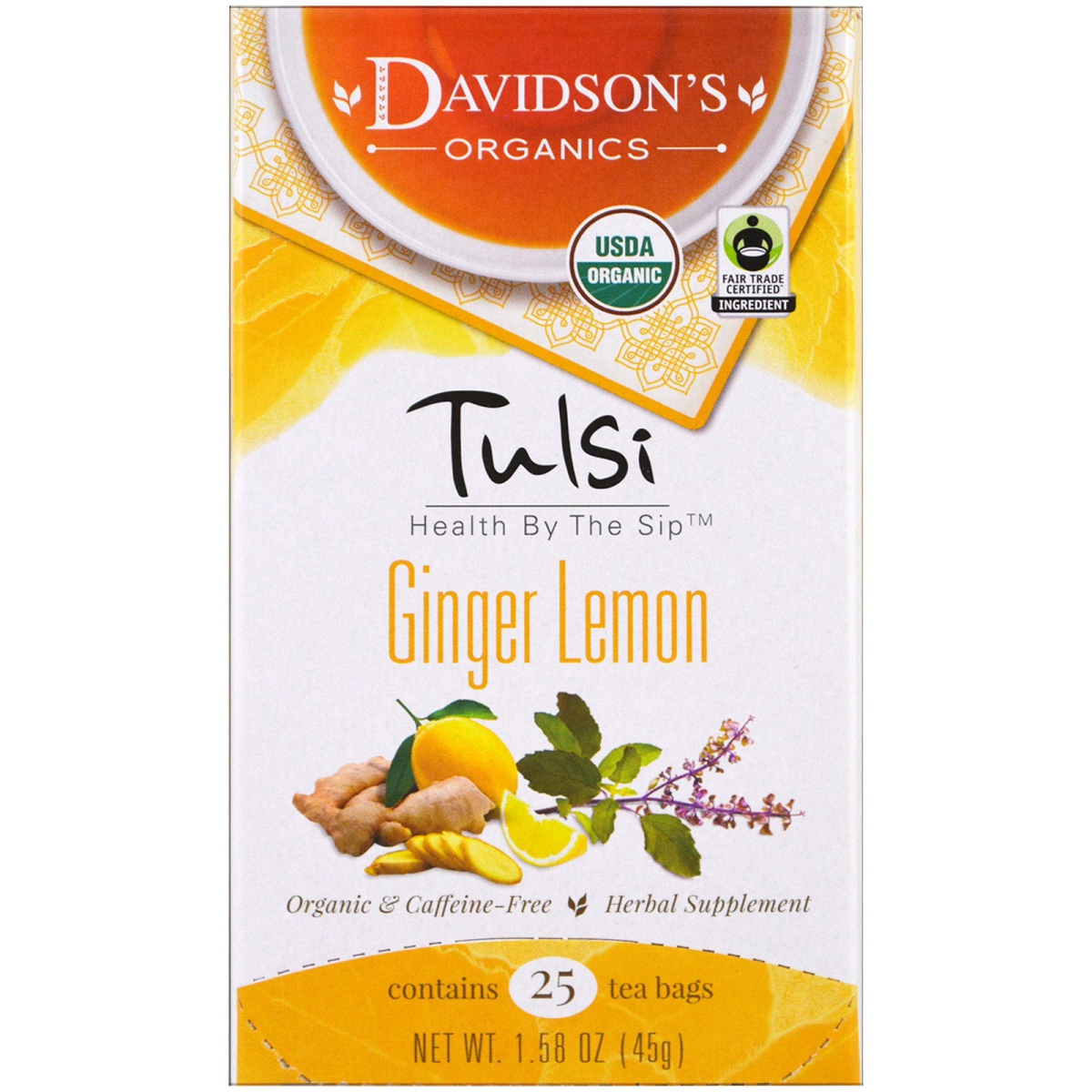 Celebrating 40th Anniversary Health by the Sip Promotes Longevity and Enhances Wellbeing & Caffeine-Free Herbal Supplement USDA Fair Trade Certified Ingredient Contains 25 Tea Bags Certified by OTCO Our philosophy remains the same since our journey began in 1976. We've worked tirelessly to develop blends that are true reflections of their names, while being committed to sourcing healthy ingredients grown by generations of skilled small farmers since the early 1900s engaging in sustainable, socially responsible agricultural practices. As the first exclusively tea purveyor, we bring you the finest fresh teas for the most discerning palates. Enjoy Davidson's s, the tea that sets the standards for the highest quality. Our Promise to You While honoring your mind and body, we invite you to experience the great rewards of drinking tea when the flavors are true and exhilarating, and when ingredients are pure and uncompromised. So enjoy every sip of the purest tea, direct from our farm to your cup, and toast to our collective wellbeing together. Uniquely Davidson's We grow our tea. We import our tea. We blend our tea. We package our tea. Tulsi Ginger Lemon Davidson's blends three varieties of Tulsi (Krishna, Rama and Vana) with ginger (helps with motion sickness & nausea) and lemon myrtle to create a delicious tartness with a kick if ginger spice. Tulsi, also known as Ocimum Sanctum, the Holy Basil or Tulasi, is a type of basil plant that has been grown for thousands of years. Since its introduction to society, Tulsi has become one of the cornerstones of Ayurvedic medicine. Tulsi is commonly cultivated for religious and spiritual purposes, and is recognized as the Elixir of Life. Additionally, Tulsi is widely enjoyed as an herbal tea and is well-known for its high antioxidant and adaptogenic properties. These properties promote wellness by strengthening the body's immune system against environmental and emotional influences. Lastly, due to its medicinal values, Tulsi is often used to treat various skin conditions, relieve stomach pains, promote blood circulation and reduce fever, just to name a few. **Fair Trade Certified