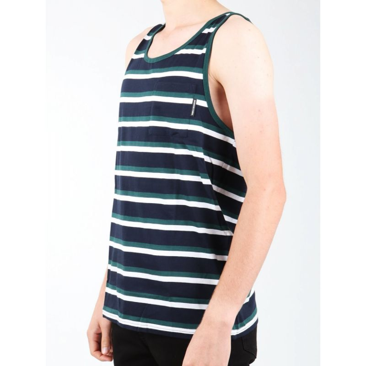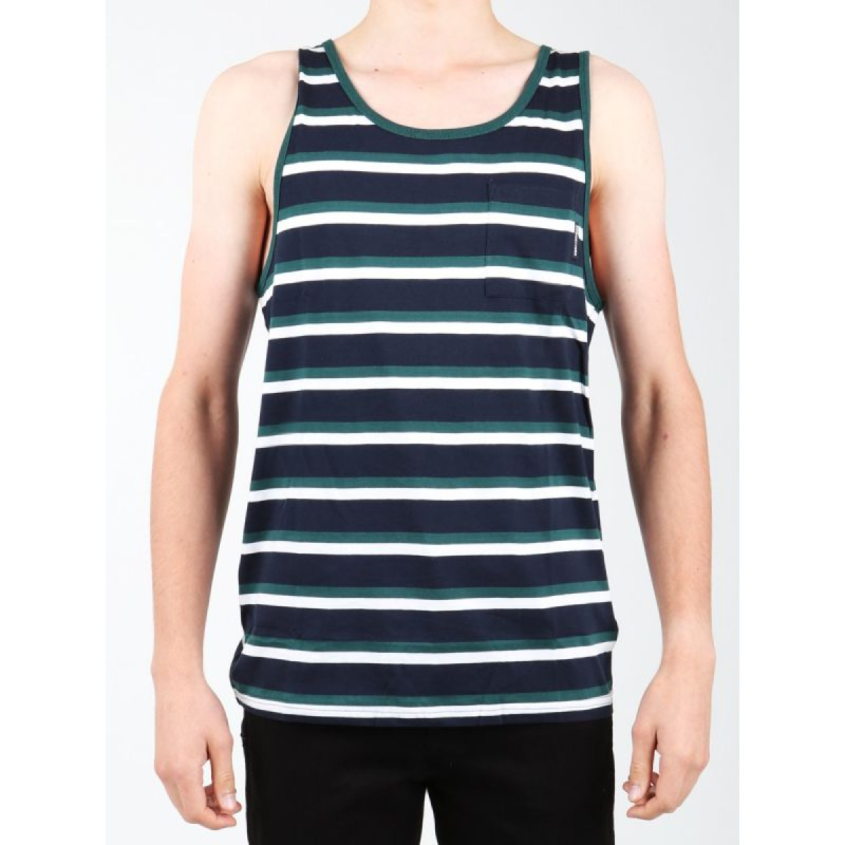-Men's striped tank top -Round neckline -Breast pocket -Material: 100% cotton