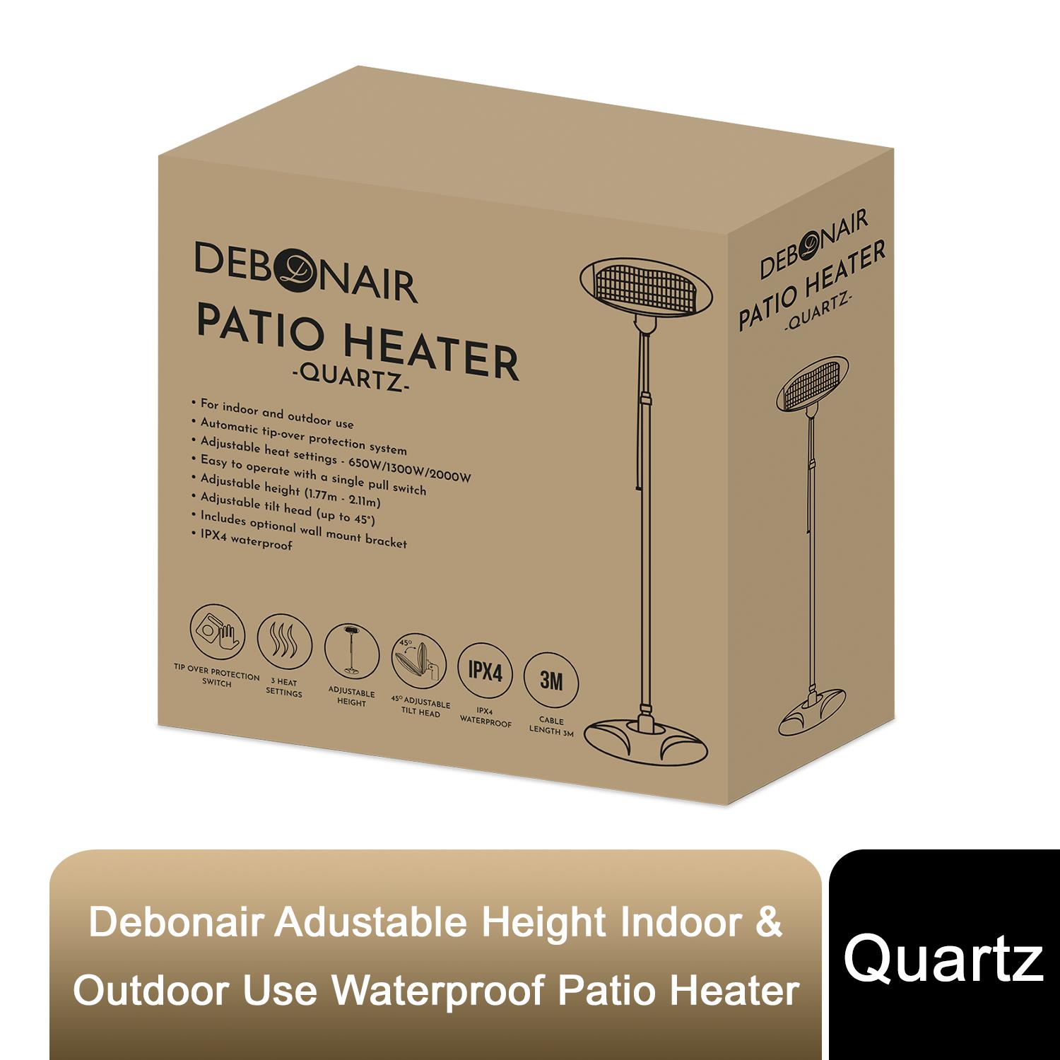 Debonair Adustable Height Indoor & Outdoor Use Waterproof Patio Heater - Quartz