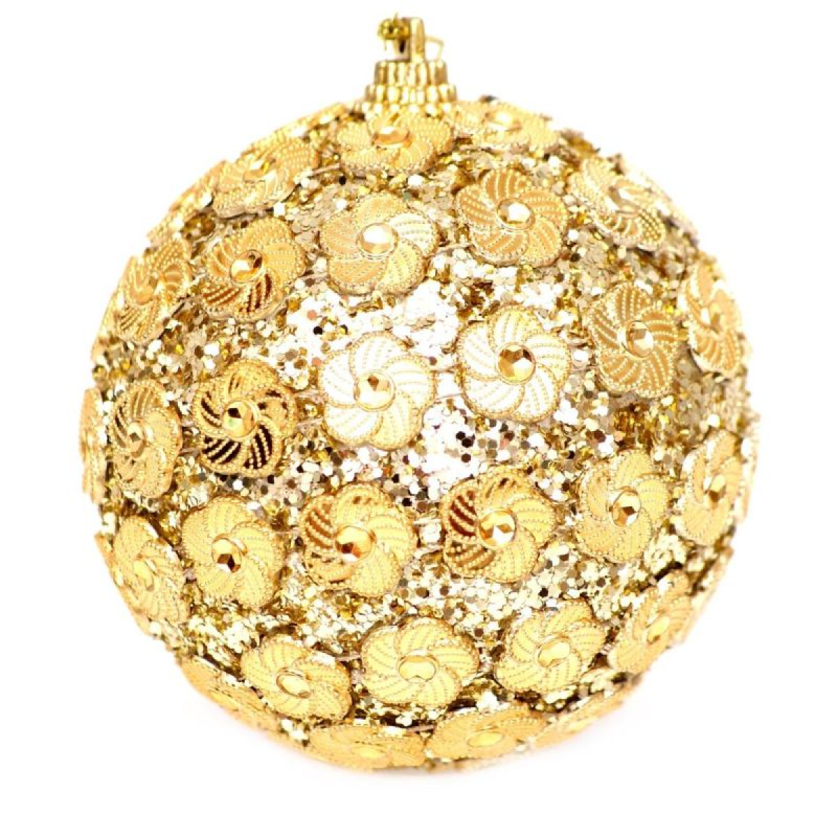 DECORATIVE BALL WITH SEQUINS 8 CM GOLD