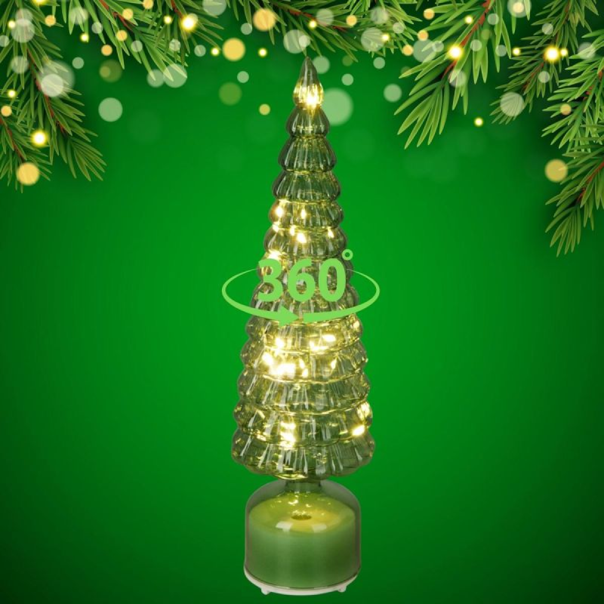 The 40 cm green LED decorative Christmas tree is an elegant glass Christmas decoration that creates a warm, magical atmosphere and attracts the eye with its twinkling light.